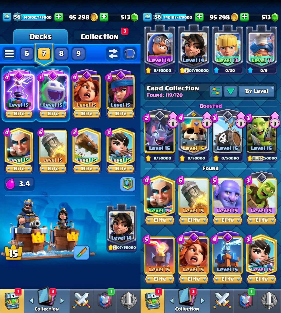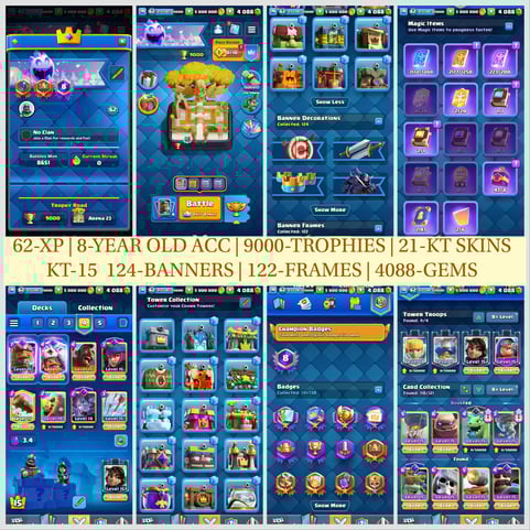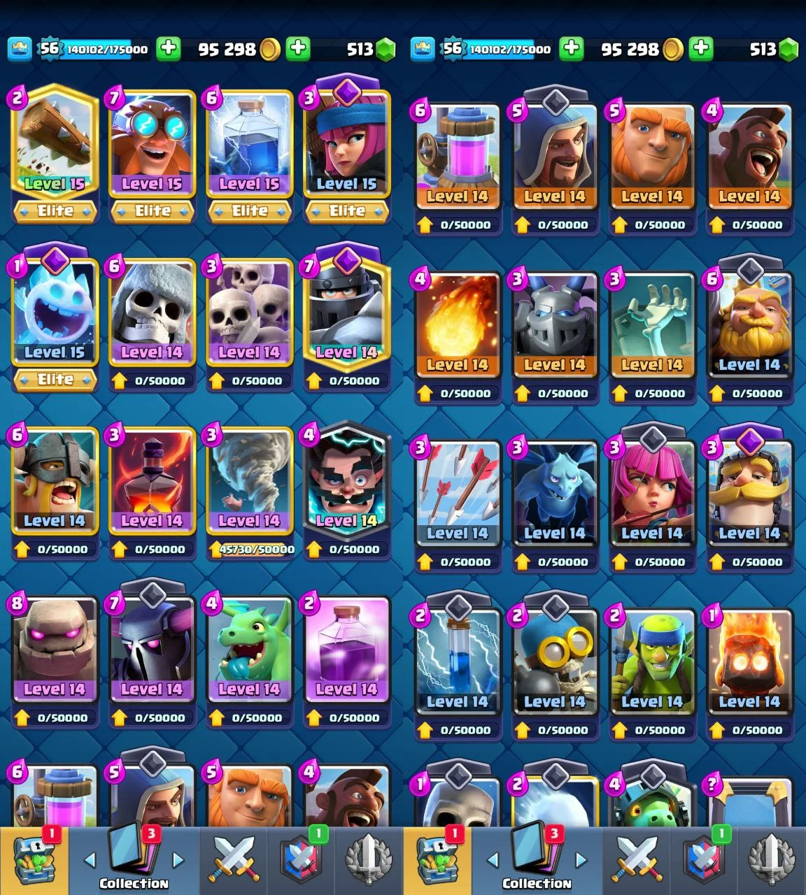 🔥[DG-1]✨LEV-56 ACCT🦕13-ELITE CARDS😋45-MAX CARDS👑7-EVO CARDS🙂9000-TROPHIES🏆KT-15⚡ARENA-23💫513-GEMS💎RENAME-500📛95-RARE EMOTES🦹🏻CHEAP👀INSTANT DELIVERY GUARANTEED🚚✅