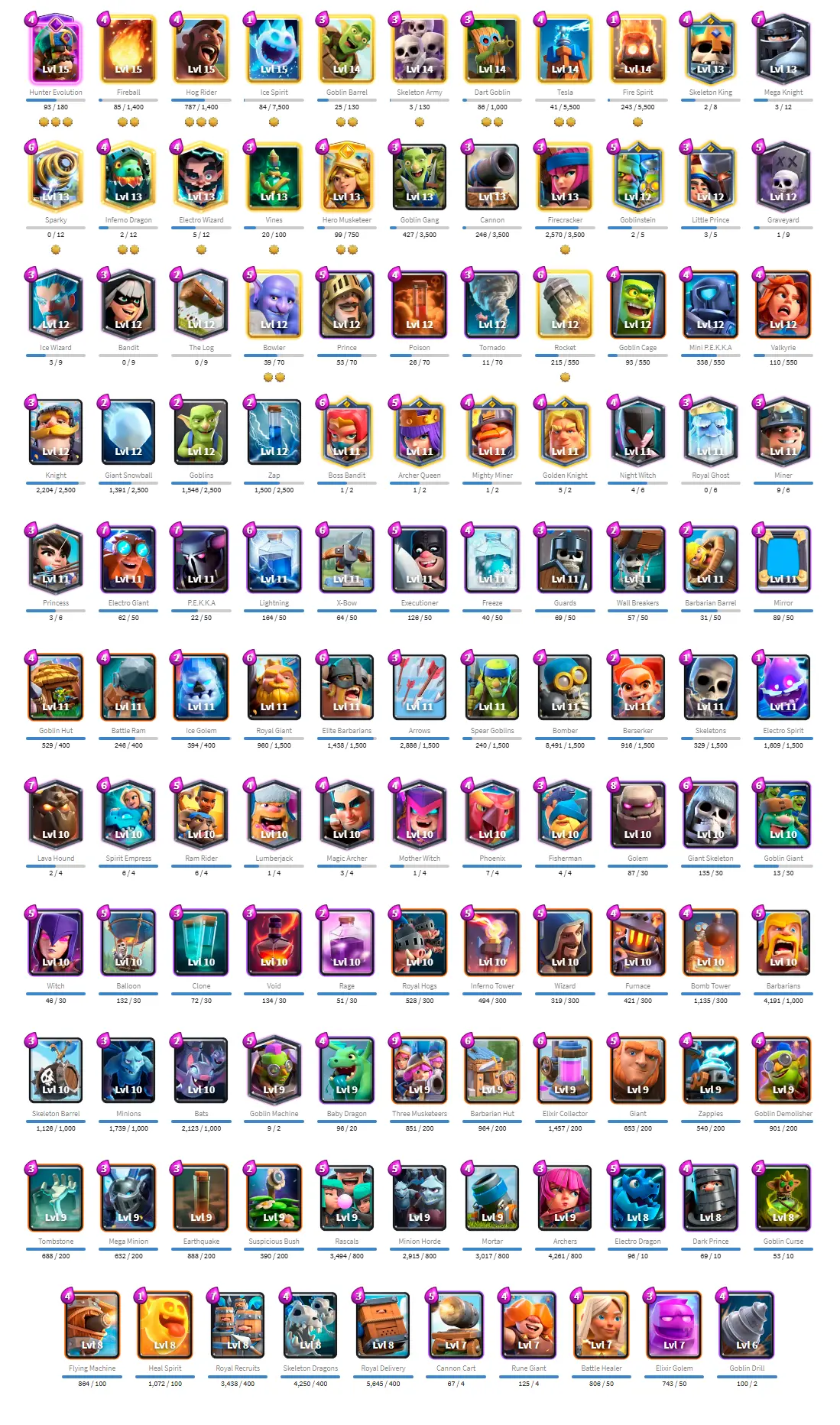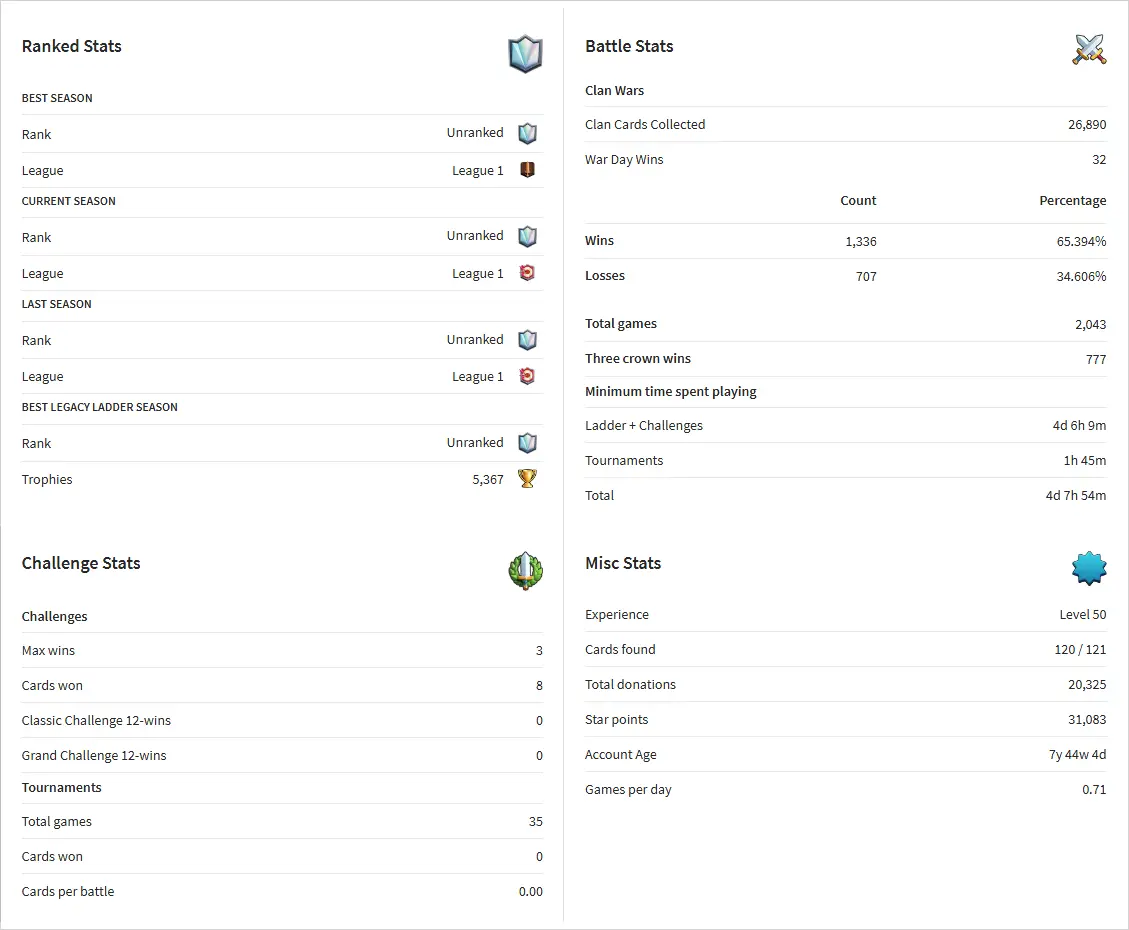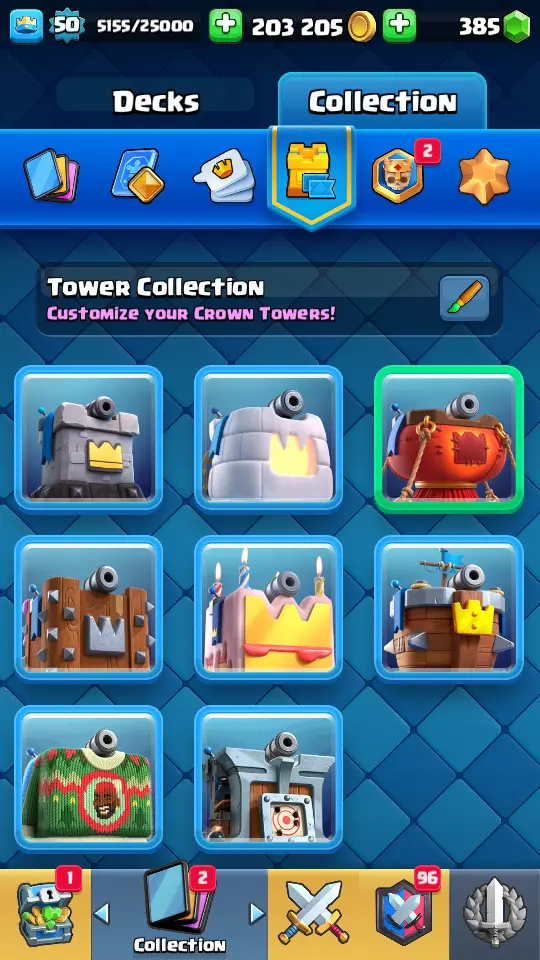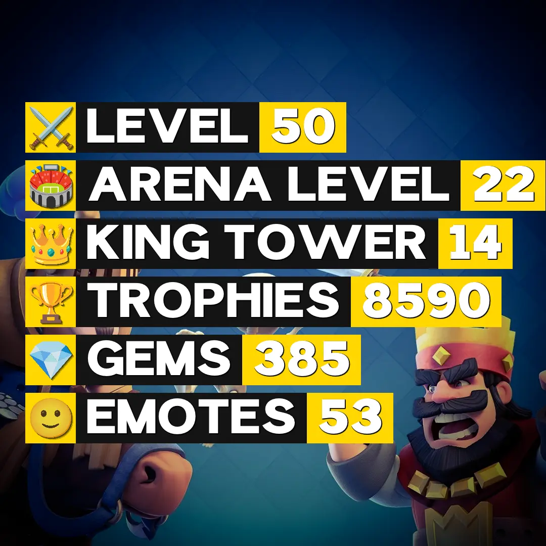 👑 King Tower 14 🏆 8590 Trophies ⚔️ Level 50 💎 Gems: 385 🧬 Evolutions: 2 🔒 Recovery Codes