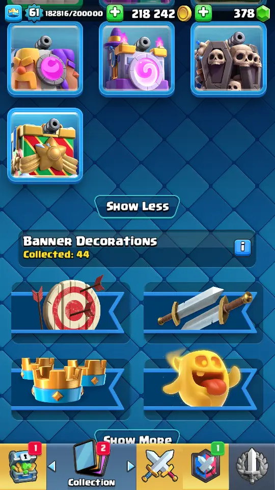 👑 King Tower 15 🏆 11013 Trophies ⚔️ Level 61 💎 Gems: 378 🧬 Evolutions: 9 🔒 Recovery Codes