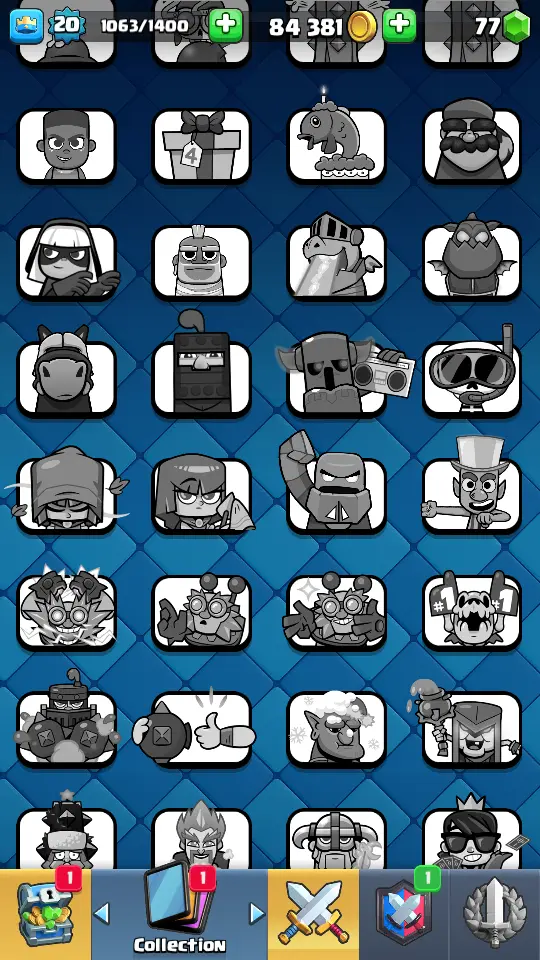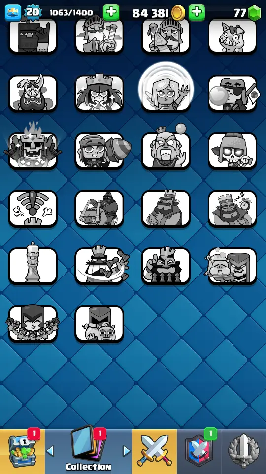 👑 King Tower 8 🏆 2036 Trophies ⚔️ Level 20 💎 Gems: 77 🧬 Evolutions: 0 🔒 Recovery Codes