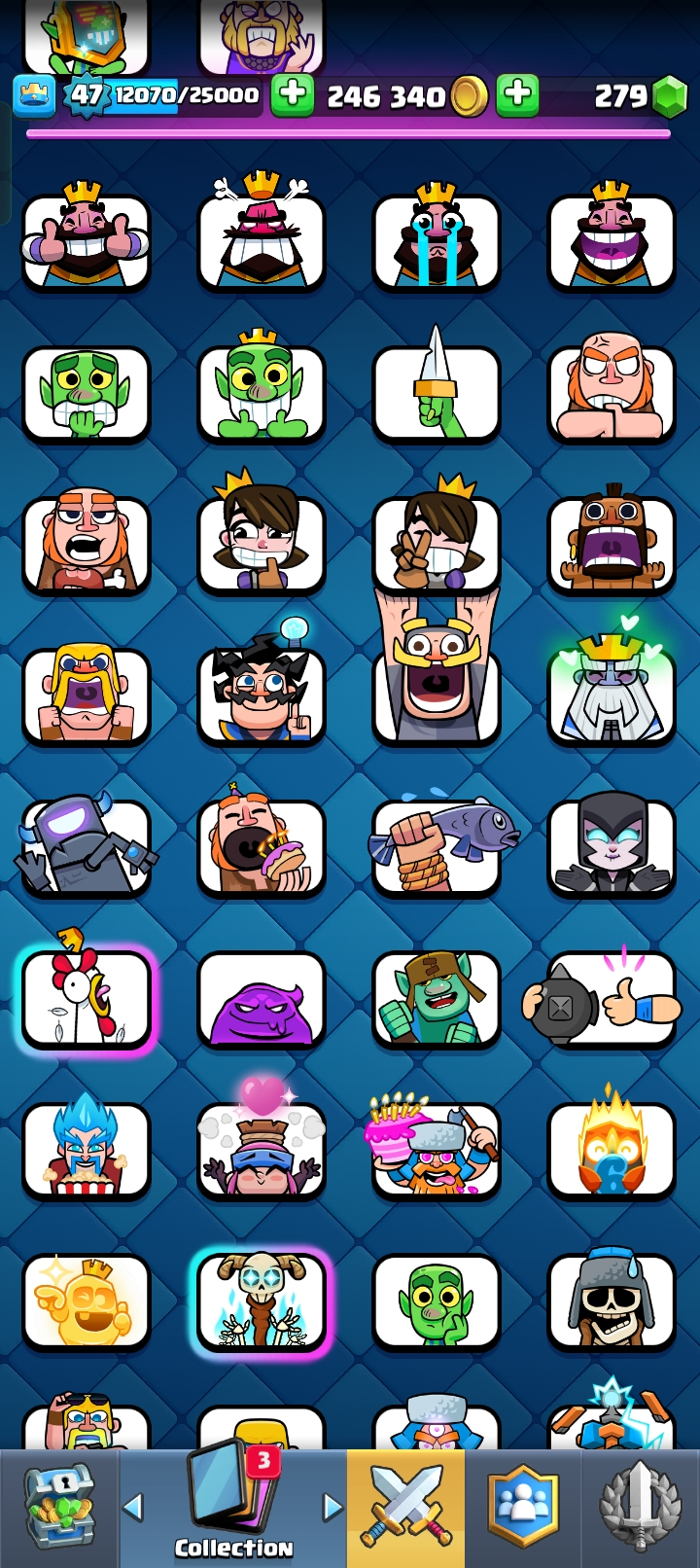 KT-14🎖️LVL 47💥13 MAX CARDS 💀5 EVOLUTION 🌀7.7K CUPS 🏆87 EMOTES[SOME RARE] 😈 INSTANT DELIVERY 🚚