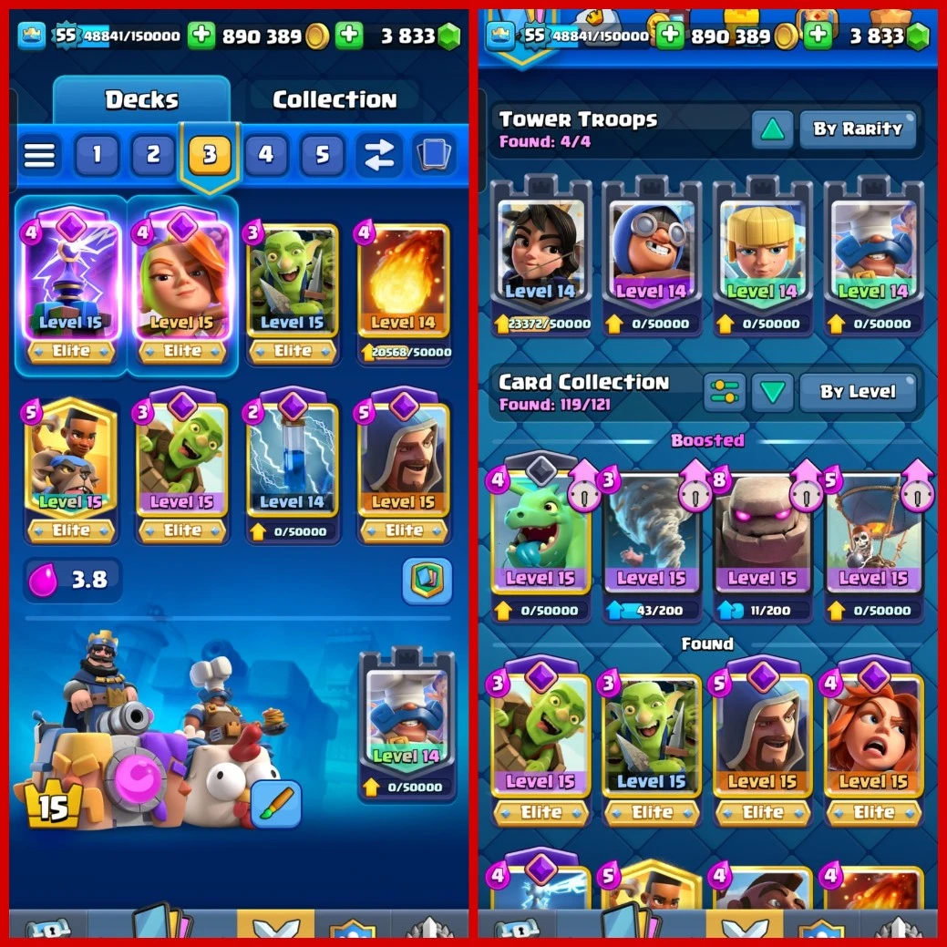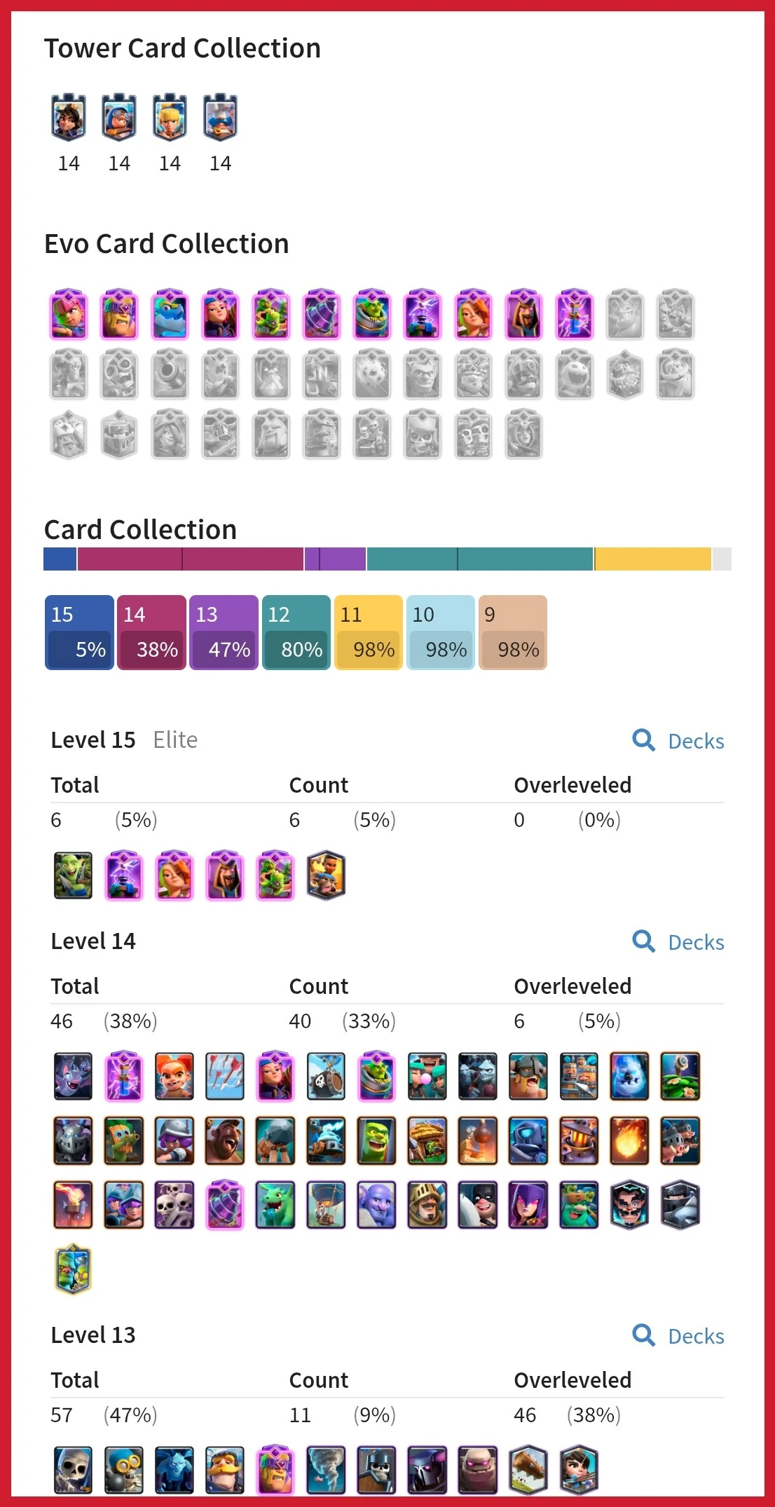 ☘️KT (15) ☘️ [46 MAX] ☘️55 XP💥11 EVO ✨40 LVL 14 CARDS ⸱ 6 ELITE ✨9000 TROPHY 🏆 ARENA 23 🔥 119 CARDS✨ 🔥 7 YEARS BADGE ✨87 RARE EMOTES ✨[3.8k+ GEMS
