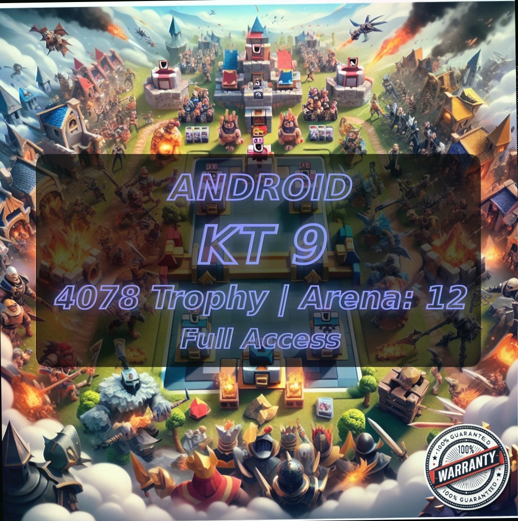 KT 9 LEVEL 24+Trophies:4078+106 Cards+2 Cards (11LVL)+4 Tower Skins+13 Emotes+37K Gold+399 Gems+IOS/ANDROID #ITEM-163071