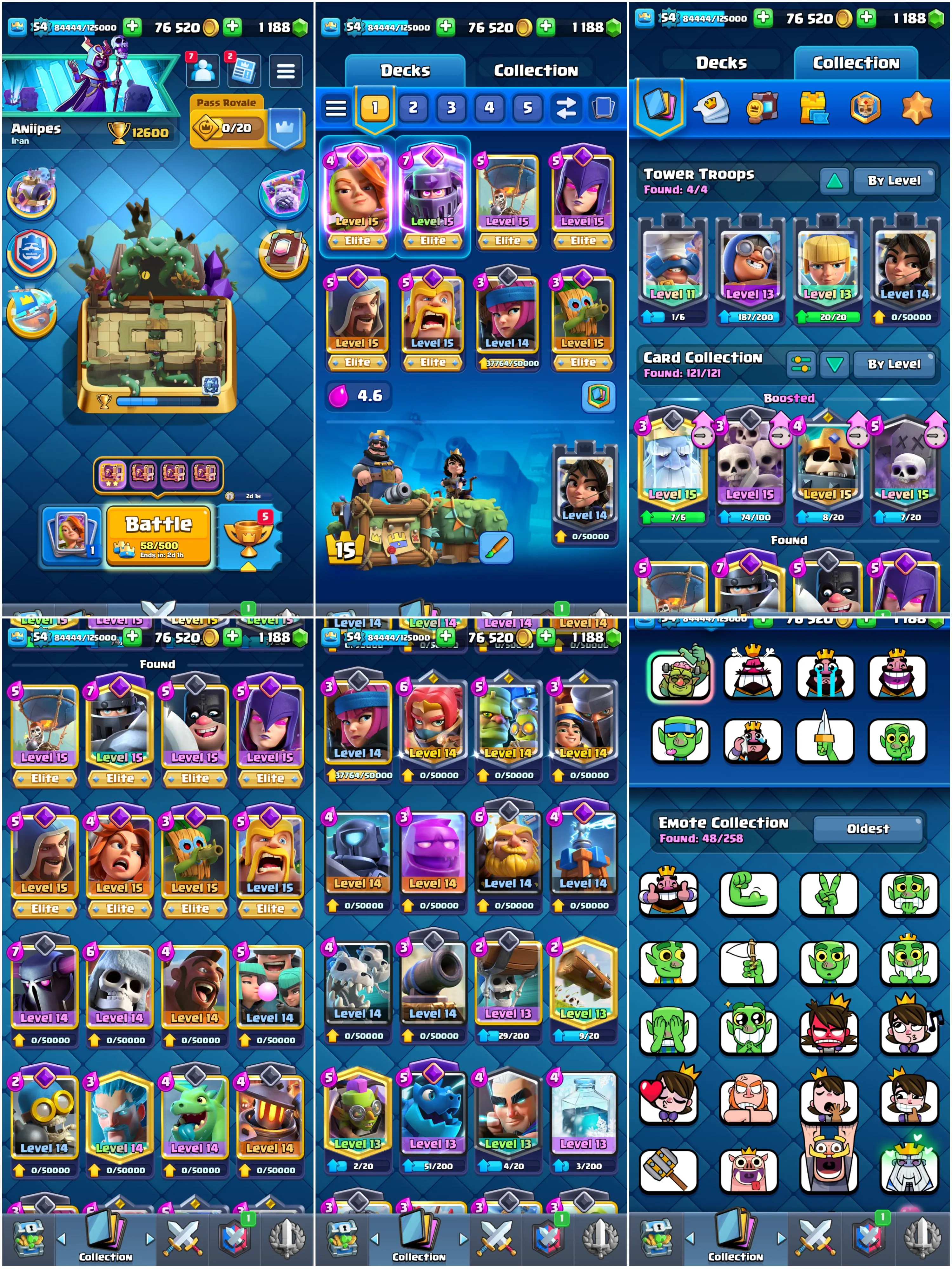 🔥 Level 54 + KT 15 • 12600 Trophies 🏆 • 26 Max Cards {8 Elites} + 11 Evolutions 💥 • 48 Awesome Emotes + 4 Tower Skins 🎯 • Instant Delivery ⚡