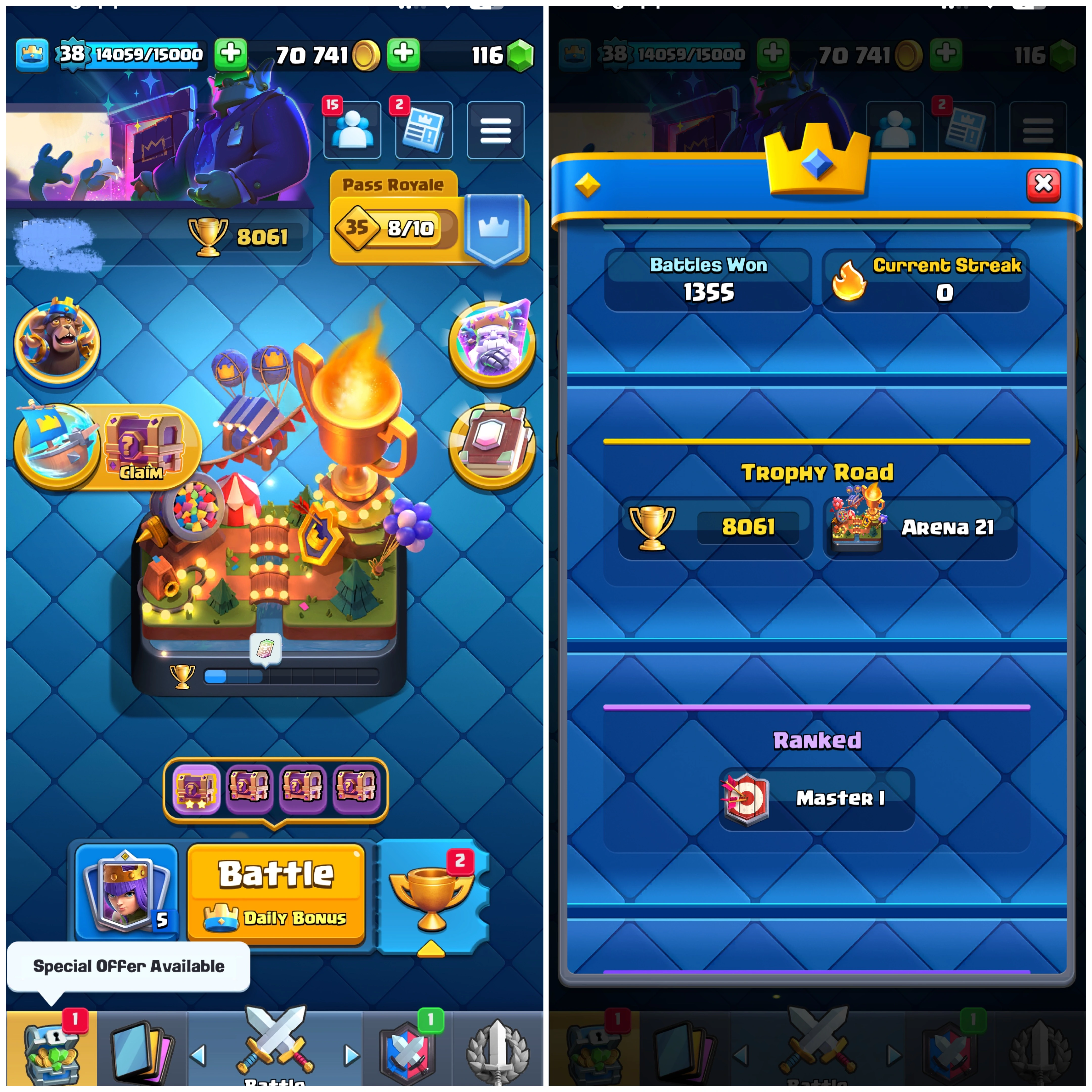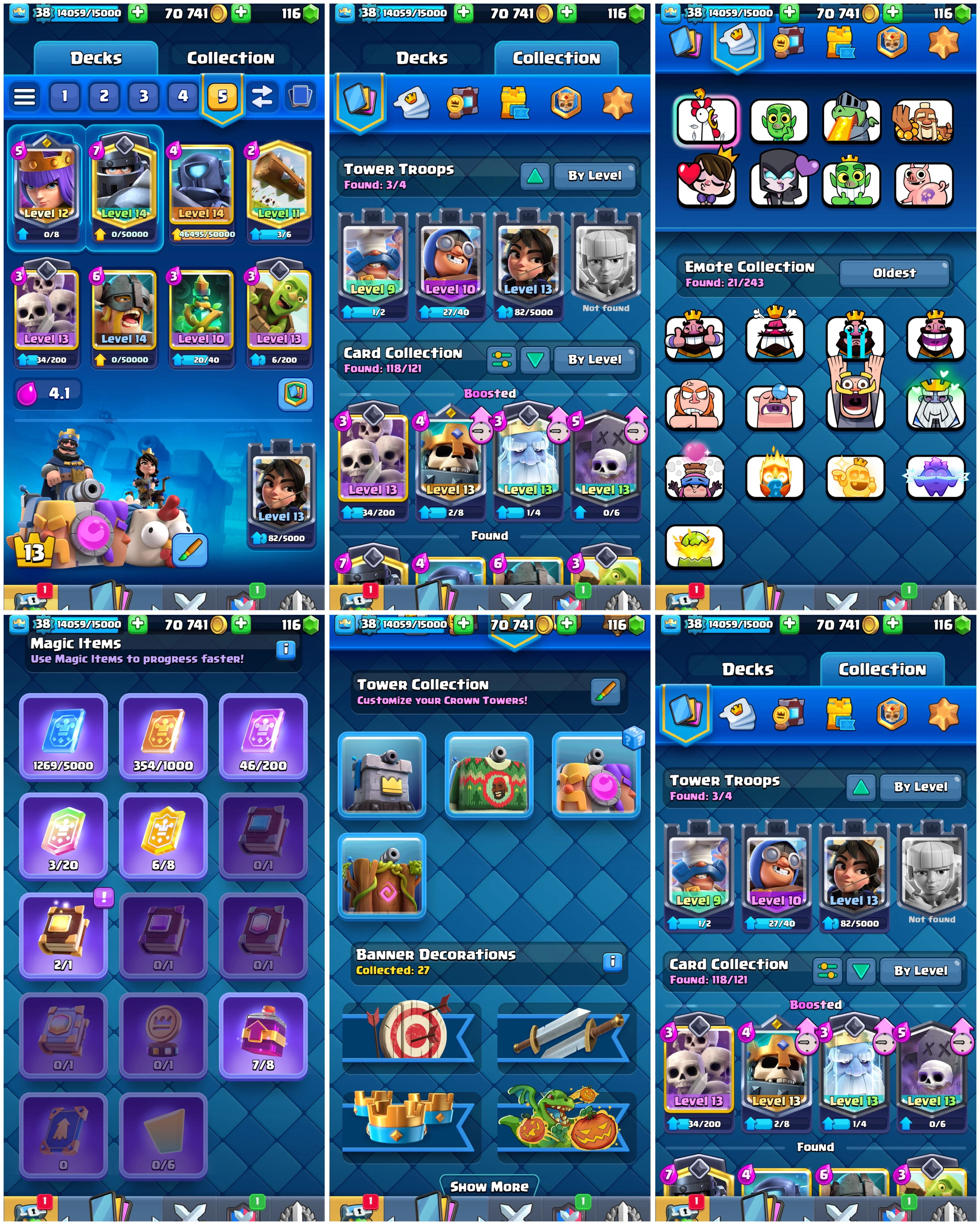 💎 Rare Drop Sale 🌟 8061 Trophies 🏆| Level 38 🔥 | King Tower 13 👑 | Arena 21 ⚔️ | Emote 21 😎 Cards 118 🚀 Instant Delivery 🚀 Lifetime Access ✅ | #P737