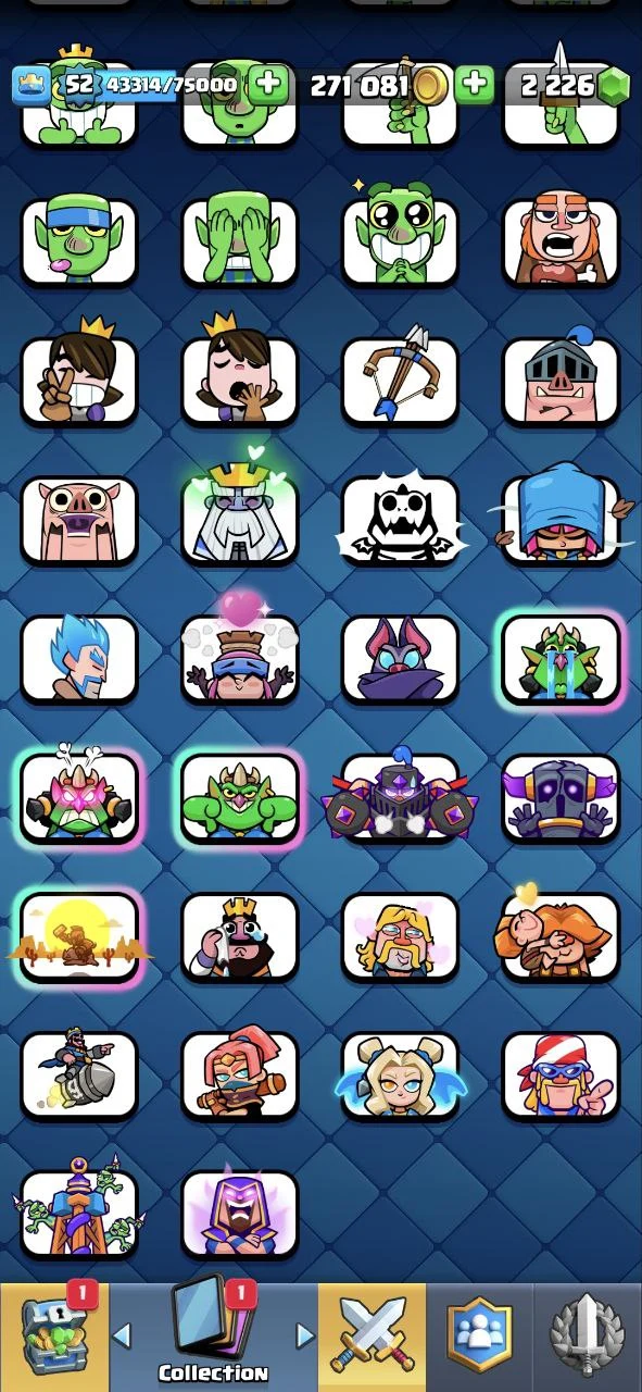 😍 RARE KISS EMOTES ✨ KT 14 🔱 LVL 52 🏆 CUPS[9320] ✨ MAX CARDS [23] ✨ ELITE [4] ✨ EVO [12] ✨ LVL 14 [19] ✨ EMOTES [50] 🔱 CARDS [119] ✨ FREE NAME CHANGE ✨ FREE COC ACCOUNT ✨ 10000% SAFE