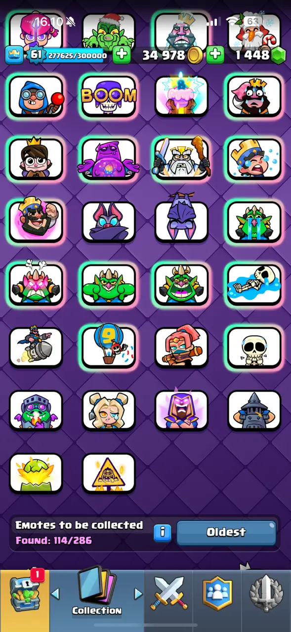 🔥 [RAREST] 🔥 CR Lv.61 🔥Seasonal Arena 5🔥15.060 Trophy🔥KT 15🔥33 Elite & 59 Max Card🔥10 Evo Card🔥114 Emotes🔥10 Tower Skins🔥Available Rename🔥Full Acces & Guaranteed🔥
