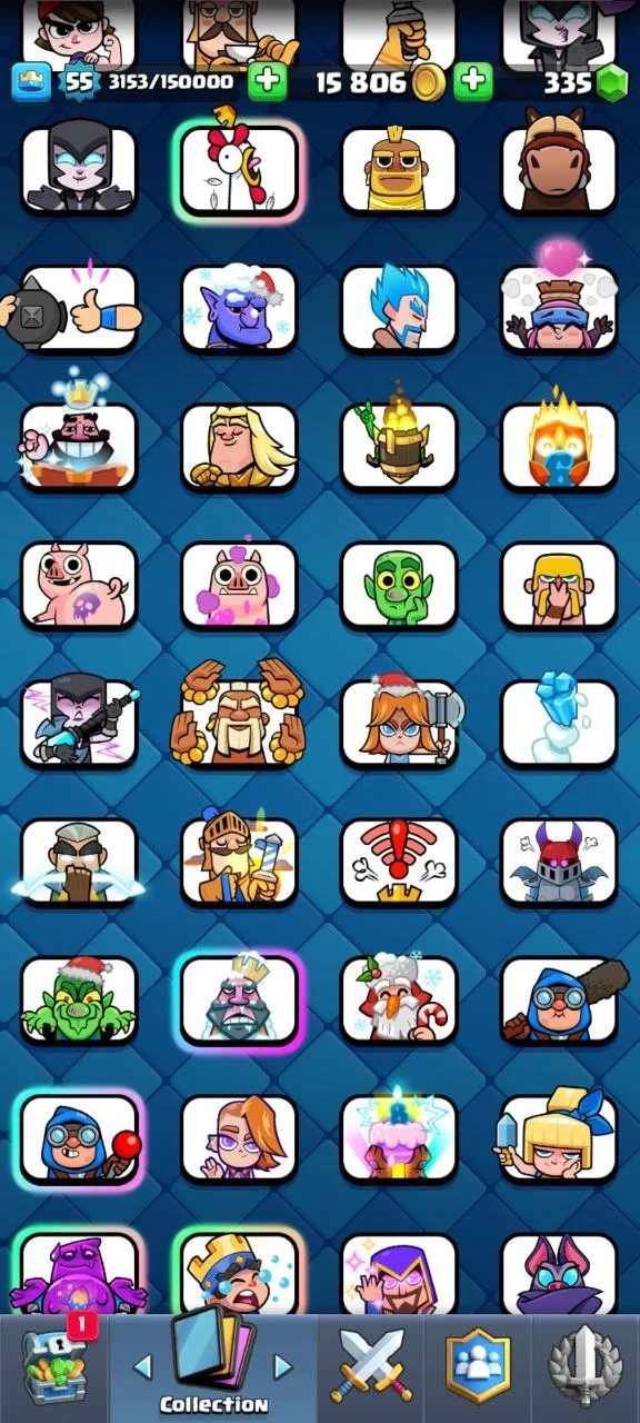 (✨RAREST KT 15 MAXED ACCOUNT [ 10 EVOLUTIONS ] 🔥 GOBLIN EMOTES 🎃 , ✅ HOG EMOTES ✨ | 👑 43 MAX CARDS 👑 | 🎃ALL 120 CARDS🎃 |💪 MAGIC ITEMS AVAILABLE 🗿KING TOWER 15 |🏆 9530 TROPHIES🏆