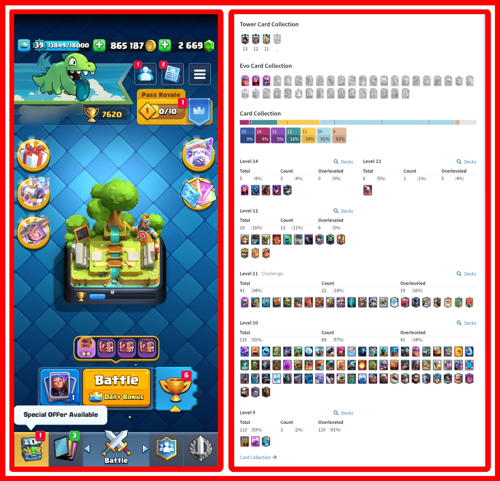 [VALUE DEAL] 💗 LEVEL 39 🚀 7620 TROPHIES 🏆 ARENA LEVEL 20 🌟 KT LEVEL 13 💫 3 EVOLUTION CARDS 🌟 5 MAX CARDS 💖 6 LVL 13 CARDS 🎁 FREE NAME CHANGE 💎 CHEAP PRICE 💸 INSTANT DELIVERY ☑️ ANDROID & IOS ☑️