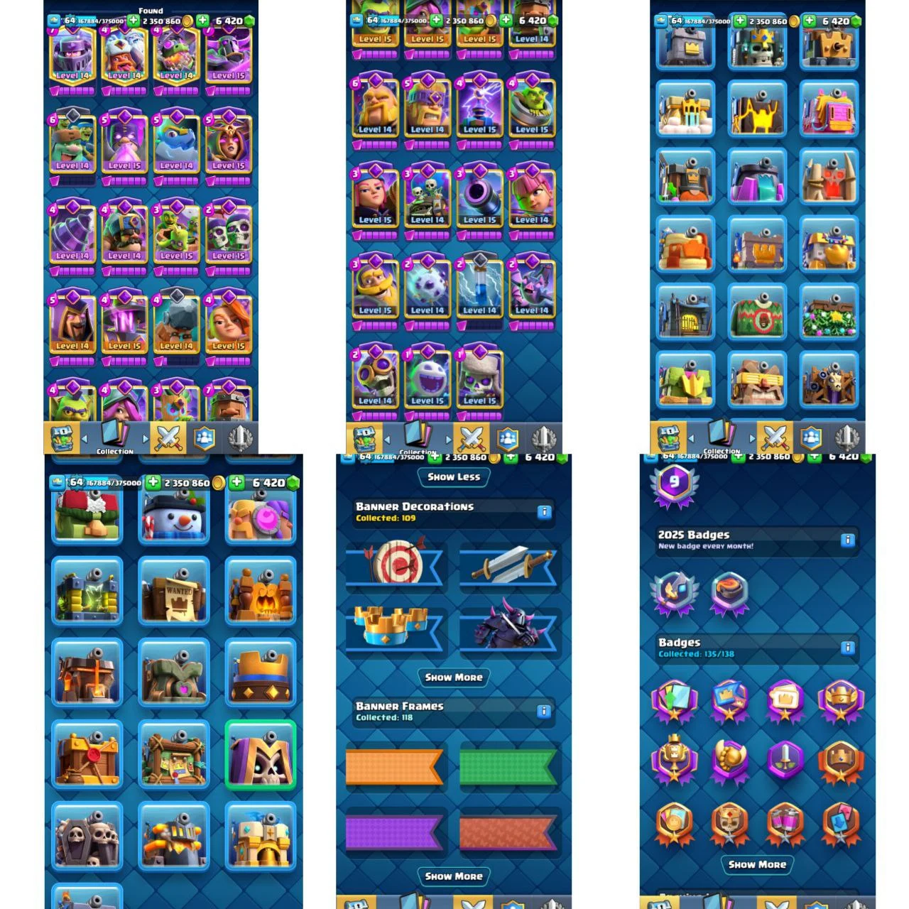 🔥XP-64🔥KT-15! 117 MAX CARDS[45X ELITES]! EVO-31! 157 EMOTES INC LOTS RARE EMOTES! 11.7K TROPHIES! 6.4k GEMS! BEST DEAL