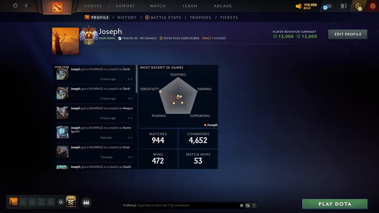 6956 MMR ⸱ Immortal ⸱ Fast search(Main pool) ⸱ 12000 behavior ⸱ 1015 matches ⸱ Original email