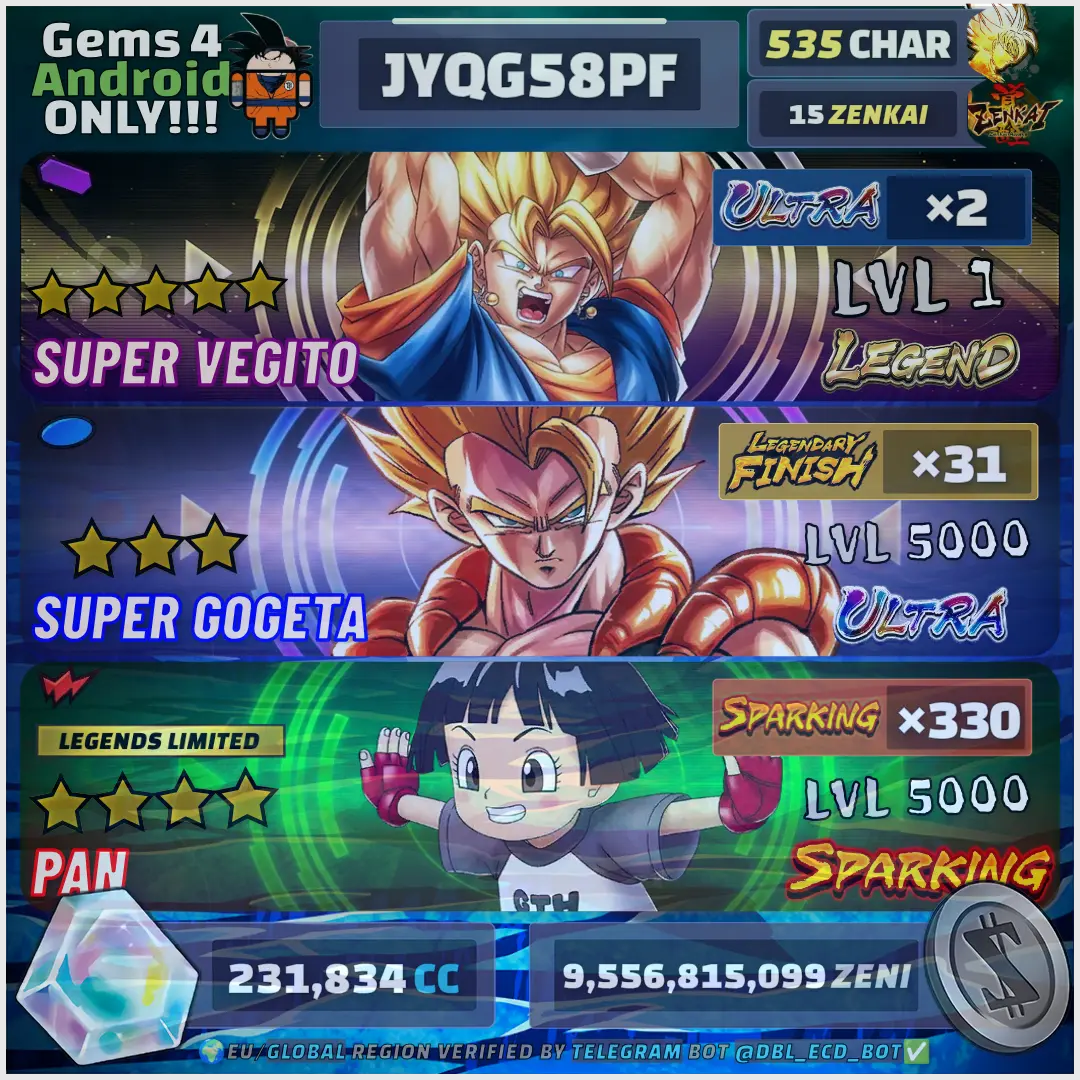 👑 WHALE Legends Collection: [📱 Platform: Android, 👤 Characters: 526, 🌟 Ultra: 2, ⚔️ Sparking: 321, 💎 Crystals: 231834, 👑 Limited: 26, ⚡ Zenkai: 13] ⸱ PREMIUM COLLECTION | GUARANTEED SAFE !AGG02428