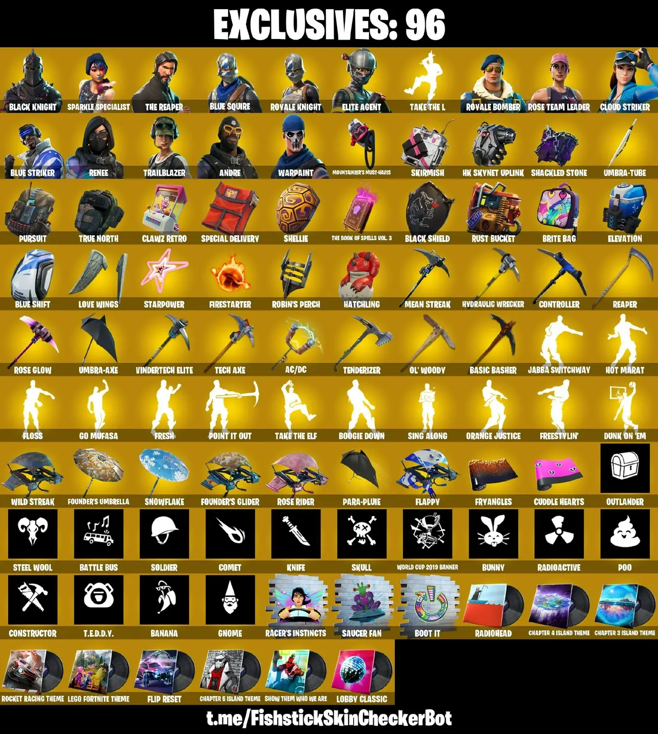⚔️ 111 Skins [PC/PSN/XBOX] 💥 OG STW 👑 Black Knight 💀 The Reaper 🛡️ Royale Knight 💃 Take The L 🪂 Royale Bomber 🚀 FO709