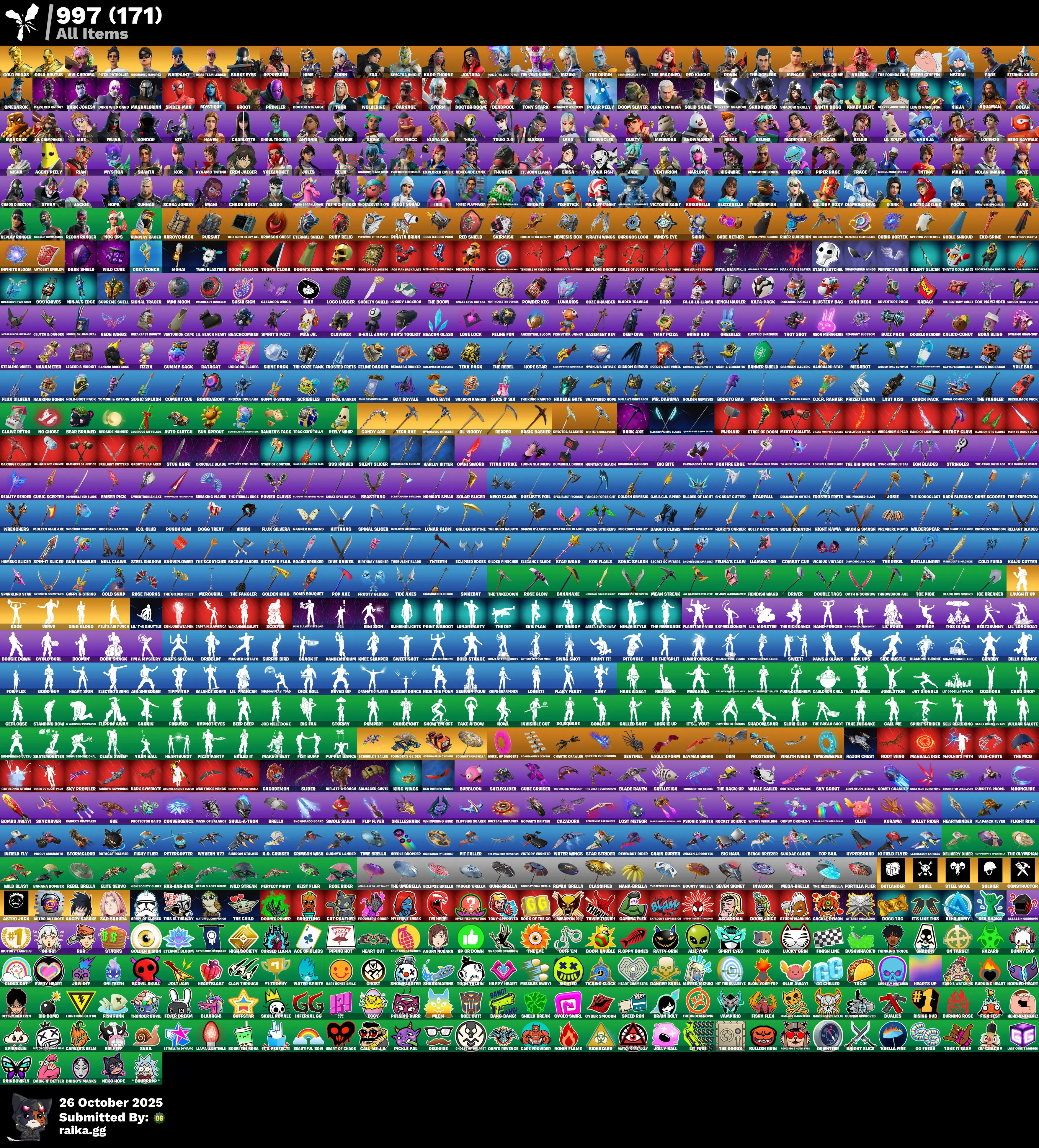 165 skins | Oppressor🎃Snake Eyes🎃Torin🎃Renzo the Destroyer🎃Gold Midas🎃The Cube Queen🎃Era🎃Joltara🎃Kado Thorne🎃Mizuki🎃Gold Brutus🎃The Imagined🎃Vivi Chroma🎃Spectra Knight🎃Gear Specialist Maya🎃Unchained Ramirez🎃OG STW🎃Hime D5227