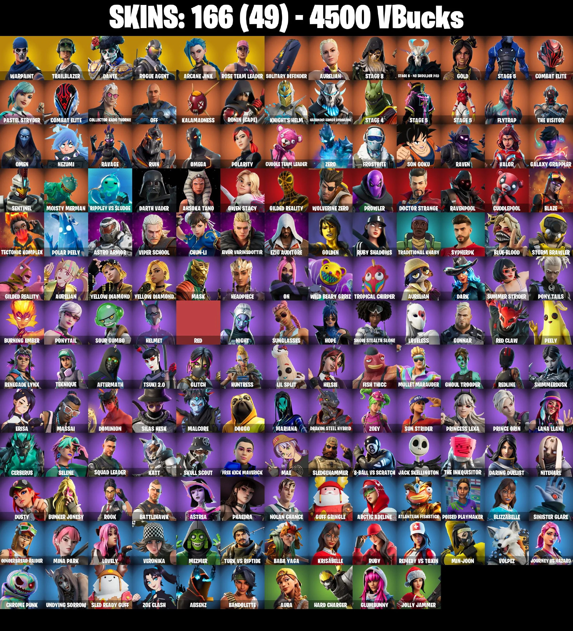 🎆166 SKINS ⚡️PC/PSN/XBOX⚡️ CHUN LI 👑 ARCANE JINX 👑 SPIDERMAN (GILDED REALITY) 👑 SPIDERGWEN (STACY) 👑 OG STW 👑 TRAILBLAZER 👑 LAUGH IT UP ⚡️MAIL CHANGEABLE #L226