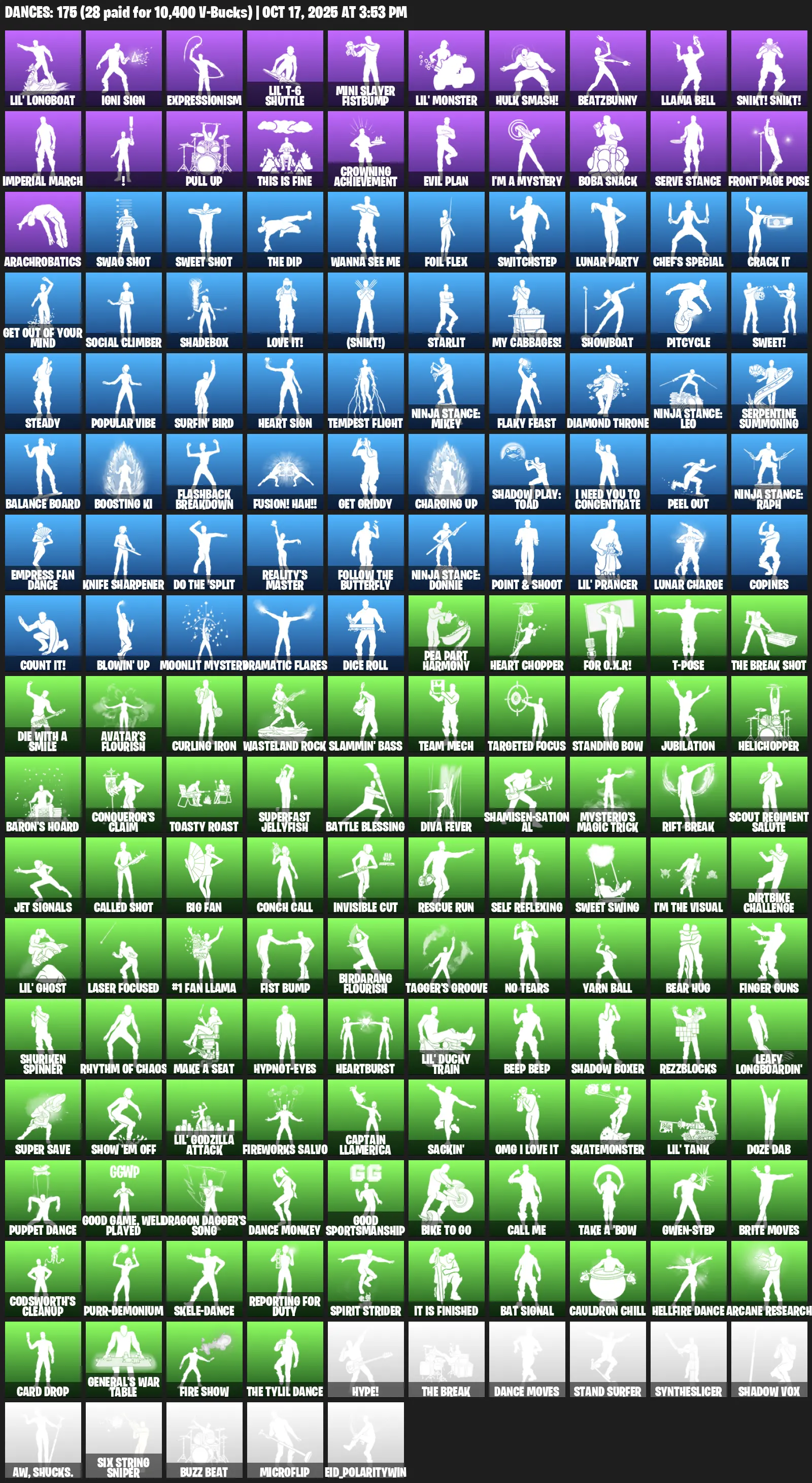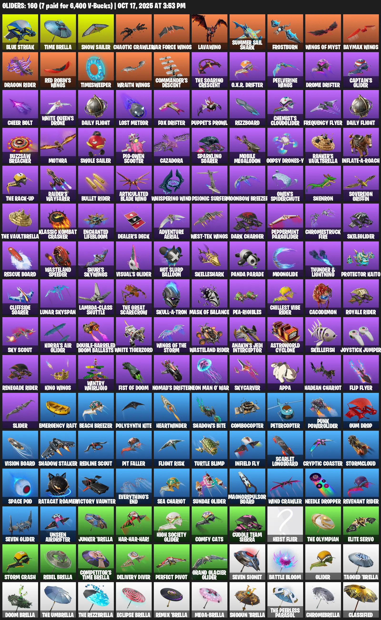 💠 201 Skins | 234 Pickaxes | 175 Emotes | 160 Gliders | Level 3000 | 400 VB | 35,000 VB Spent | STACKED RFR ACCOUNT 💎