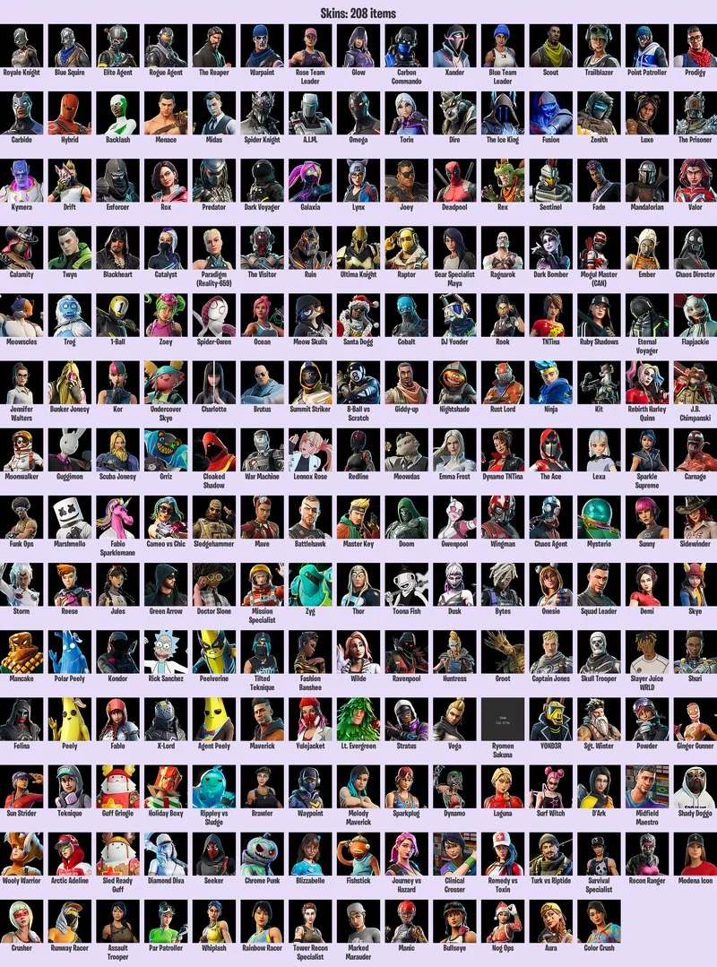 208 Skins|OG STW|Royale Knight|Blue Squire|Elite Agent|Rogue Agent|The Reaper|Warpaint|Rose Team Leader|Glow|Carbon Commando|Xander