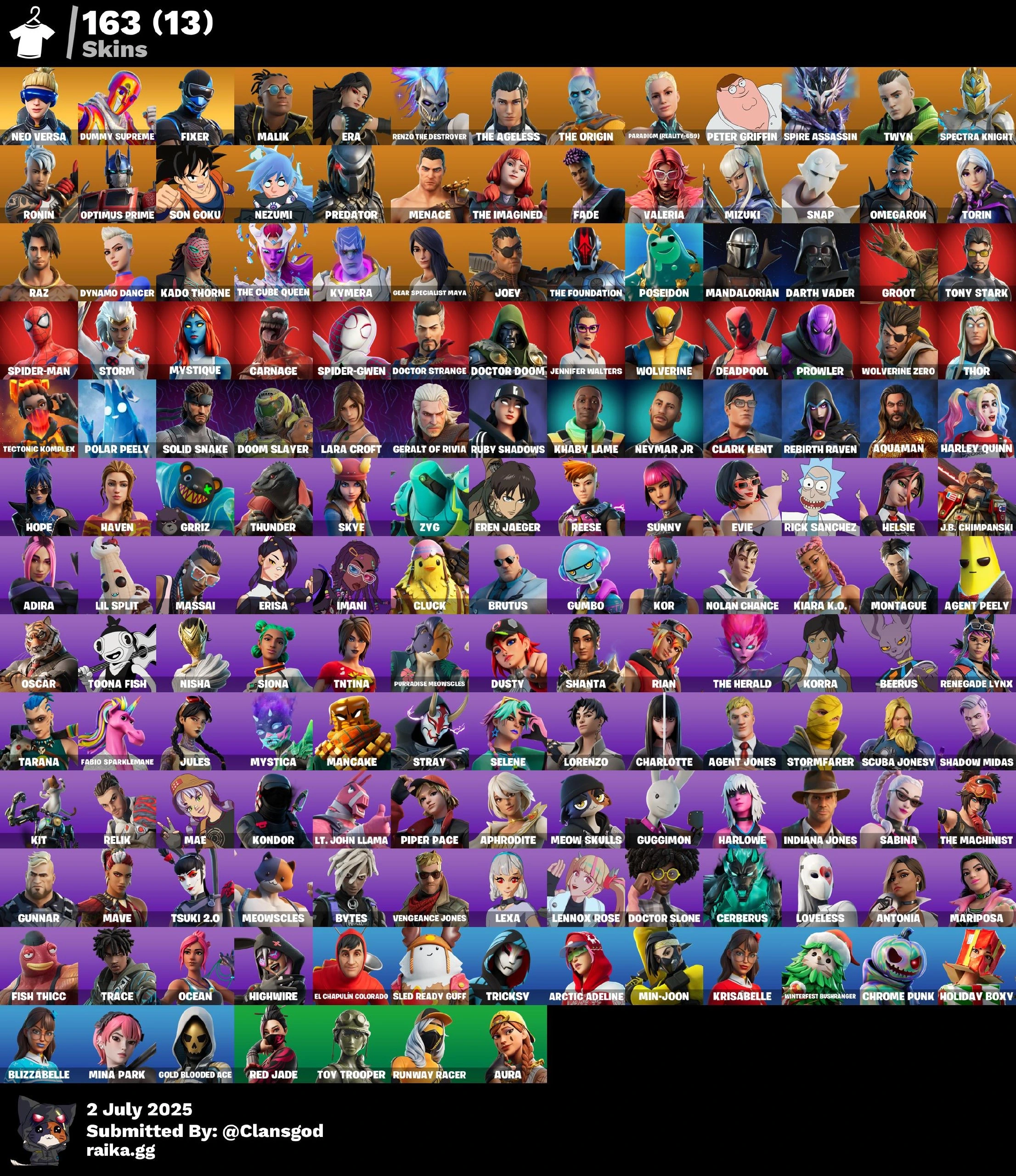 EXCLUSIVE DEAL🔥PC/PSN/XBOX😍163 skins | Neo Versa | Dummy Supreme | Fixer | Malik | Era | Renzo the Destroyer | The Ageless | The Origin | Paradigm (Reality-659) | 1050 VB