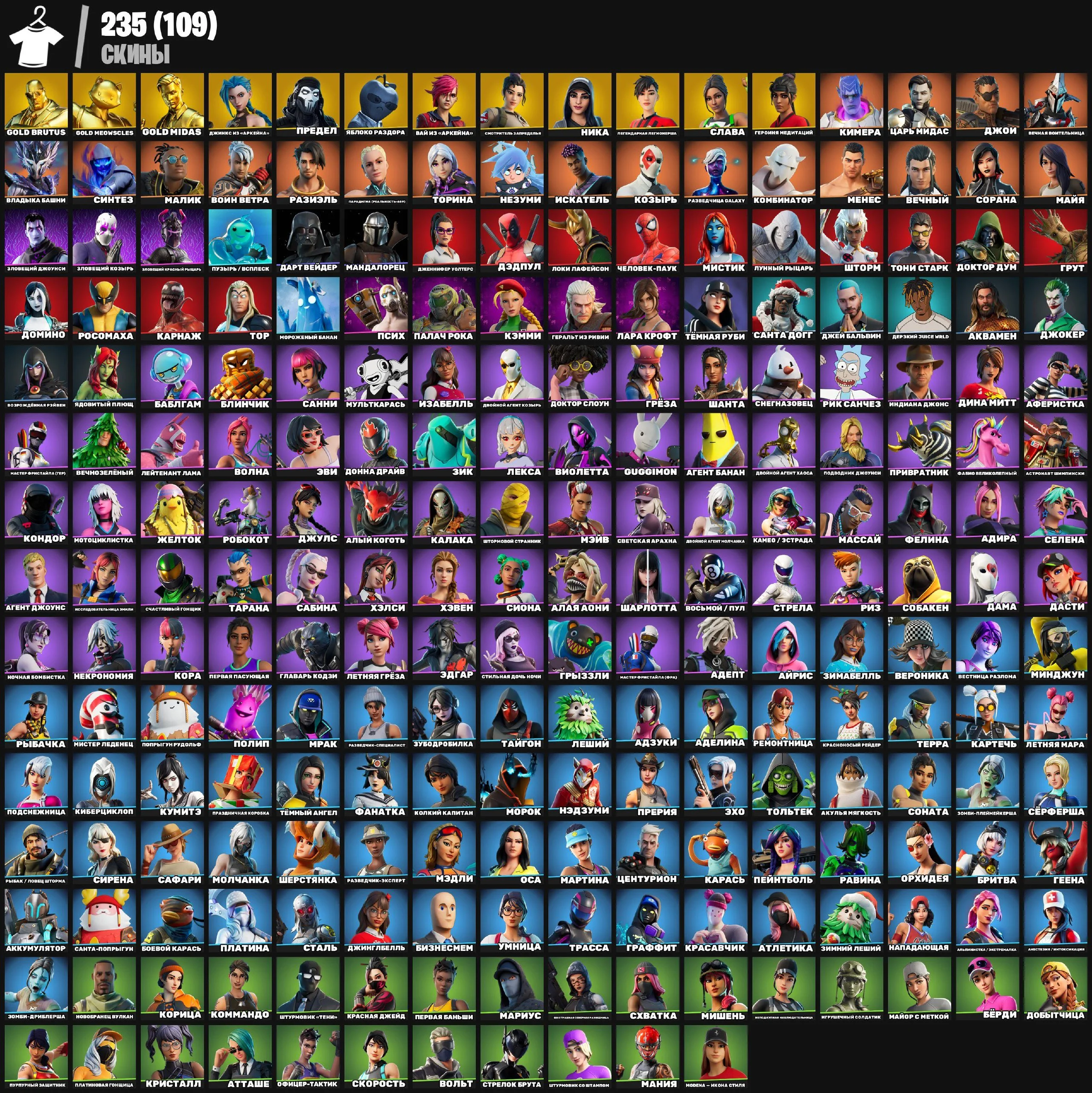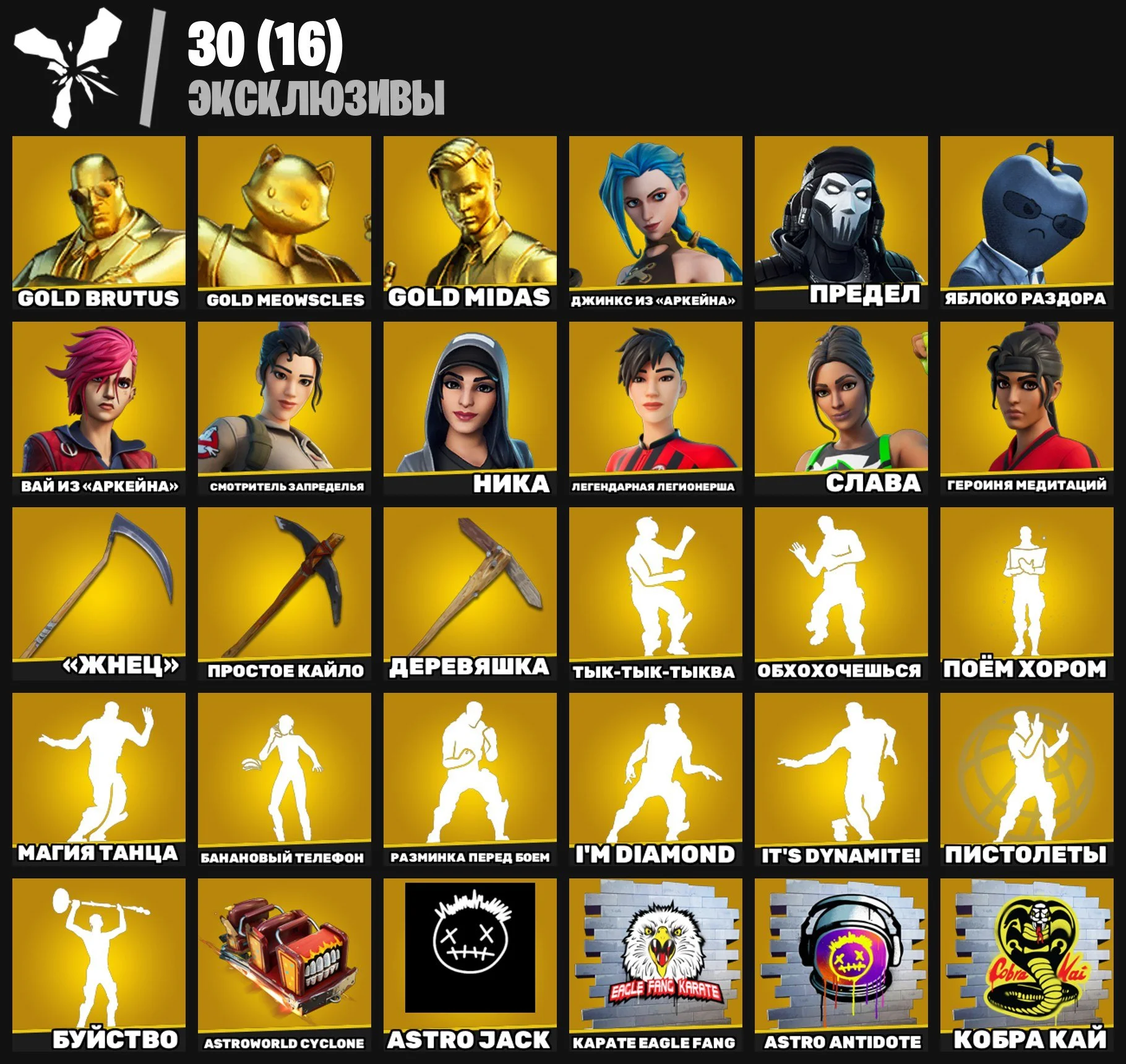 F780 JINX, VI, MAJOR GLORY, CURSE BUSTER, LAUGH IT UP, RAGE, ASTROWORLD, GOLD MIDAS, 235 Skins