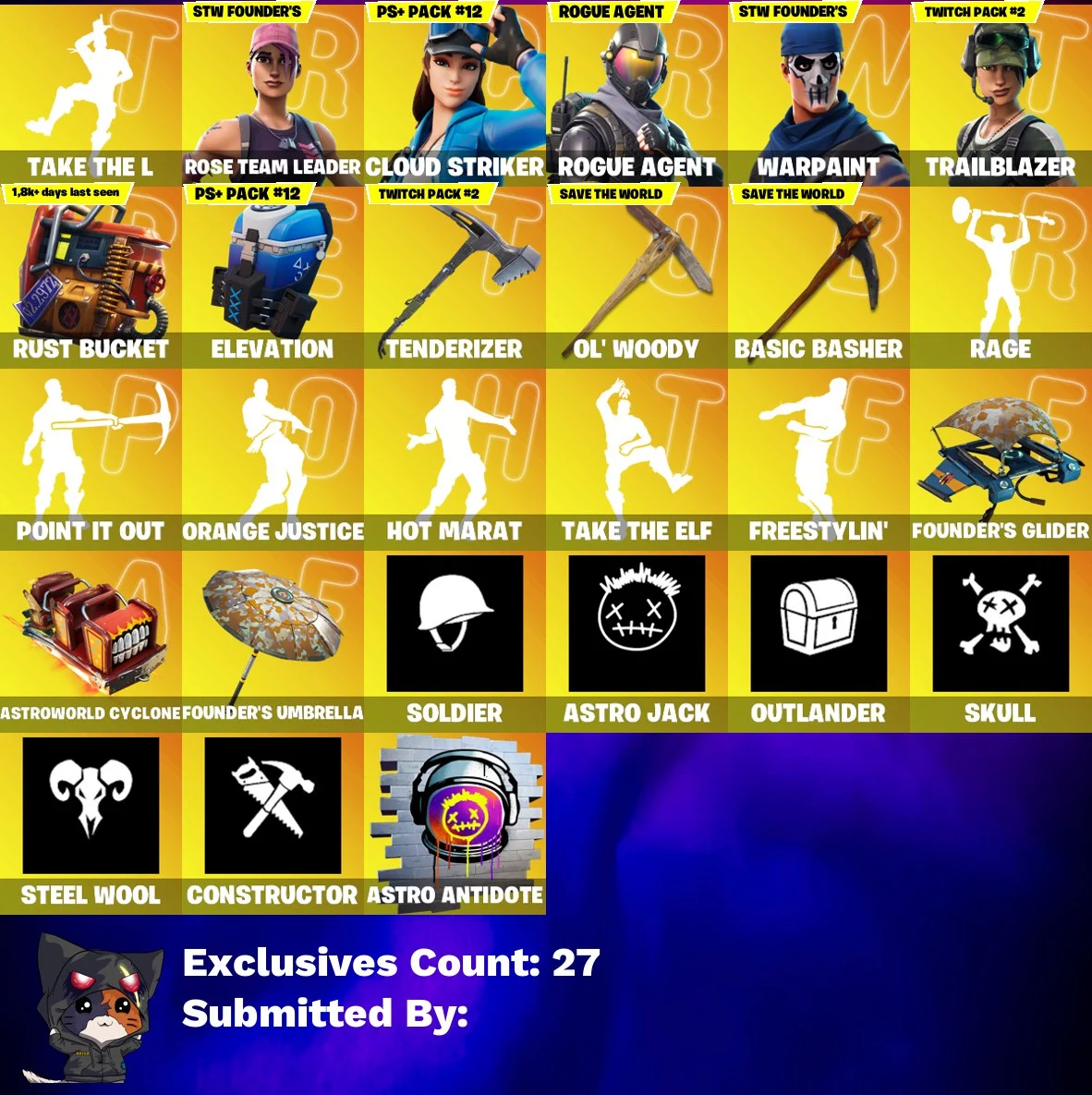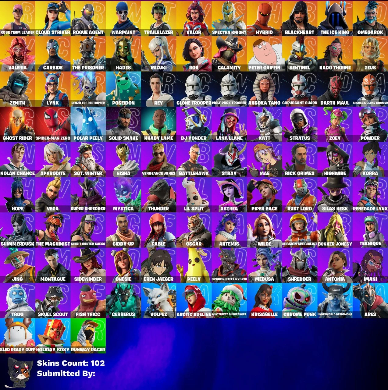 💥🌟 LIMITED OFFER 🌟💥 102 SKINS 💎 TAKE THE L 💎 CLOUD STRIKER 💎 ROGUE AGENT 💎 TRAILBLAZER 💎 VALOR 💎 SPECTRA KNIGHT 💎 HYBRID 💎 BLACKHEART 💎 THE ICE KING 💎 OMEGAROK 💎 VALERIA 💎 CARBIDE 💎 HADES 💎 MIZUKI 💎 ROX 💎 CALAMITY 💎 3250 VB 💎 OG STW 💎 FULL ACCESS 💎