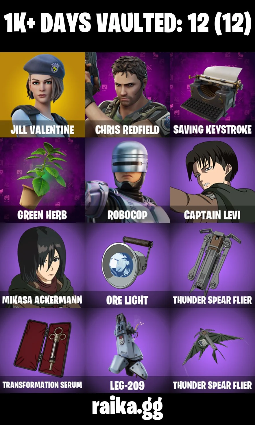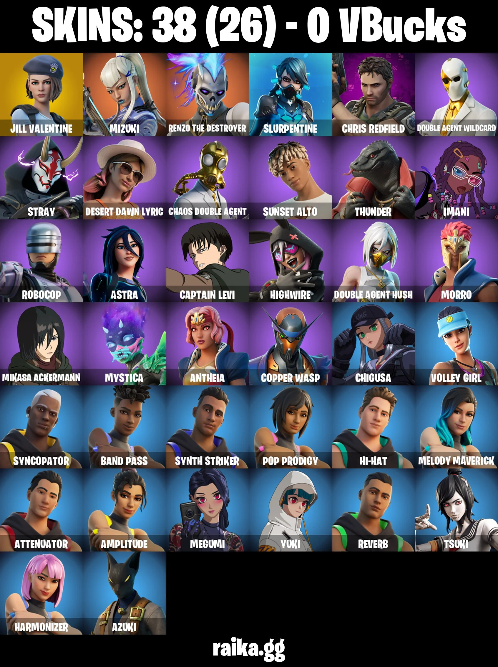 Original Email ✅ Inactive for 3 years | 38 skins | Captian Levi | Mikasa Ackermann | Jill Valentine | Mizuki | Renzo the Destroyer | Slurpentine | Chris Redfield | Double Agent Wildcard | Stray | Desert Dawn Lyric | 0 VB