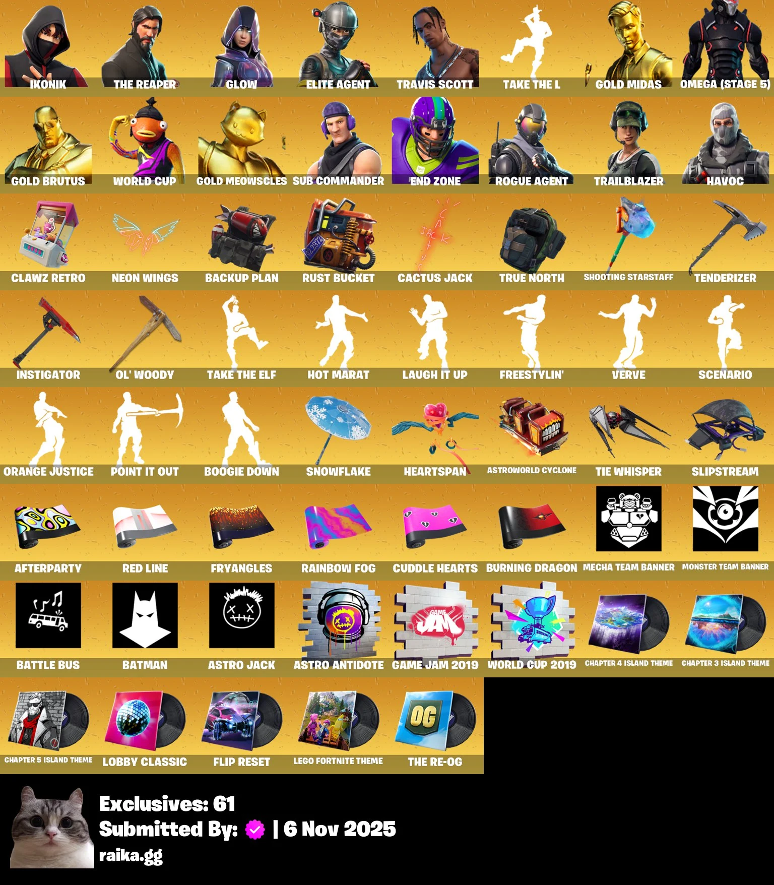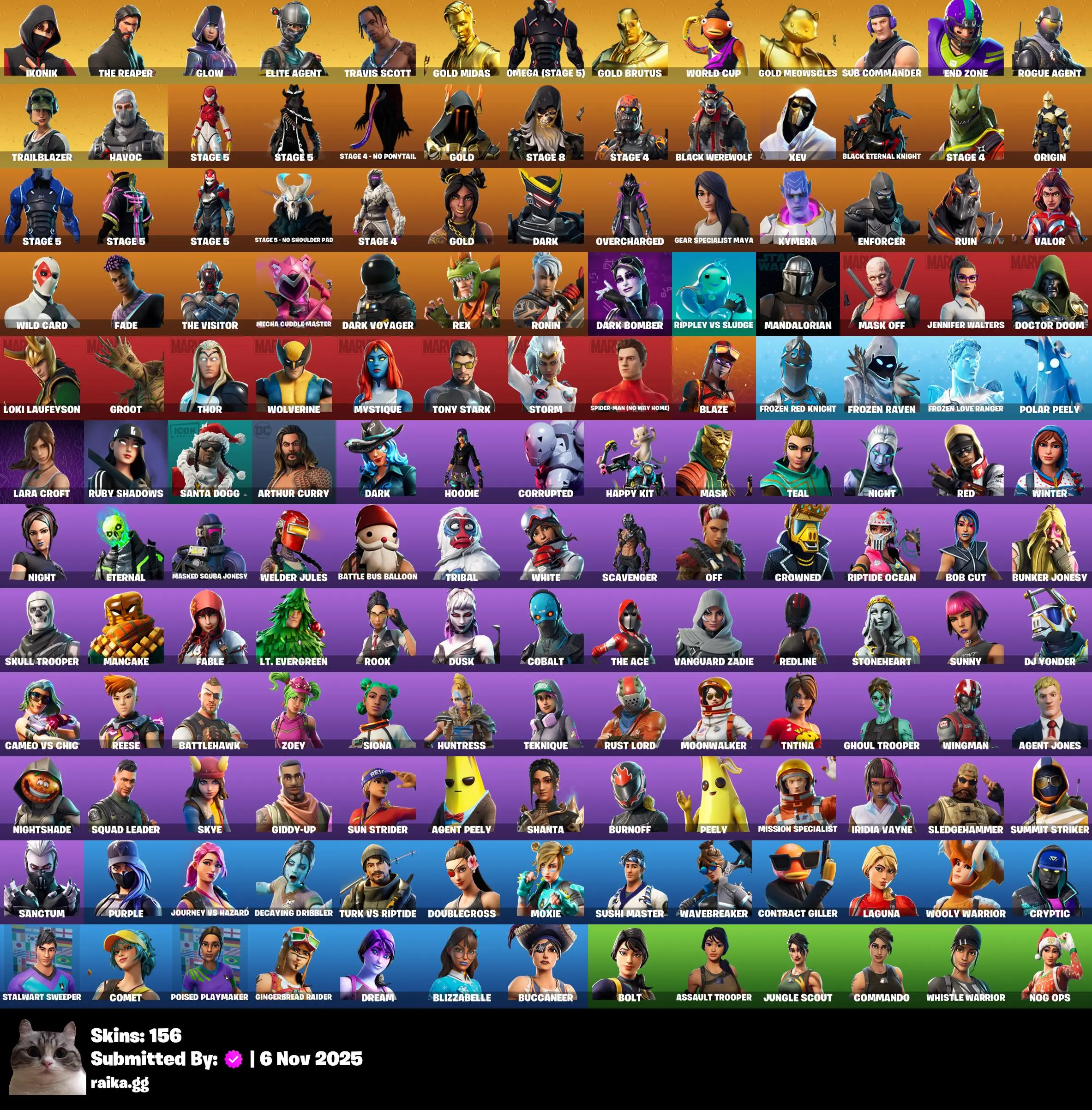 [PC] 156 skins | IKONIK | The Reaper | Glow | Elite Agent | Travis Scott | Gold Midas | Omega (stage 5) | Gold Brutus | WORLD CUP | Gold Meow