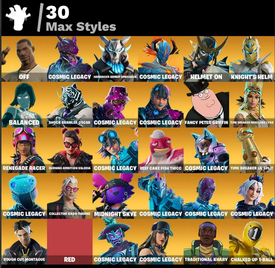 (PC PSN XBOX) 135 skins | Omegarok | Valeria | Battle Hound | Peter Griffin | Zero | John Wick | Kado Thorne | Spectra Knight | Dark Red Knight | 2550 VB / REAPER / CANDY AXE