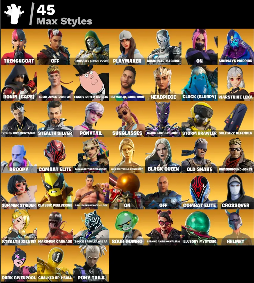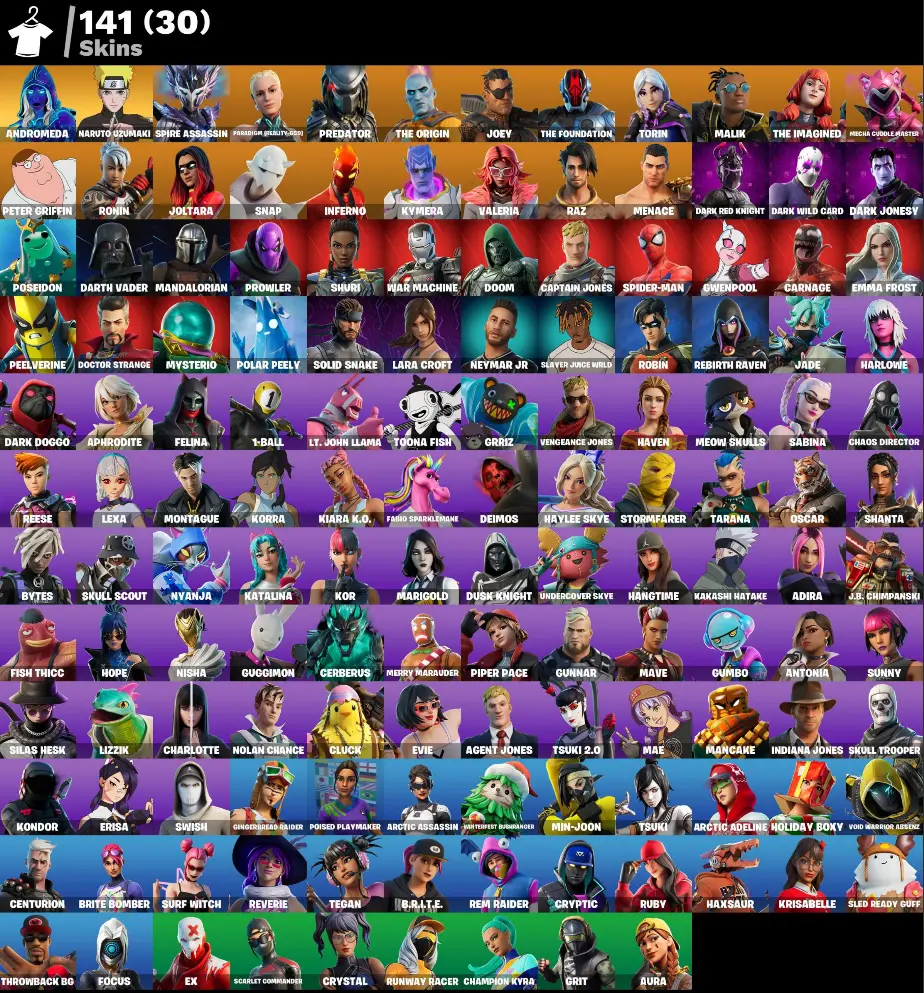 (PC PSN XBOX) 141 skins | JOLTARA / LARA CROFT / SURF WITCH / SKULL TROOPER / CANDY AXE / Andromeda | Naruto Uzumaki | Spire Assassin | Paradigm (Reality-659) | Predator | The Origin | Joey | The Foundation | Torin | 150 VB