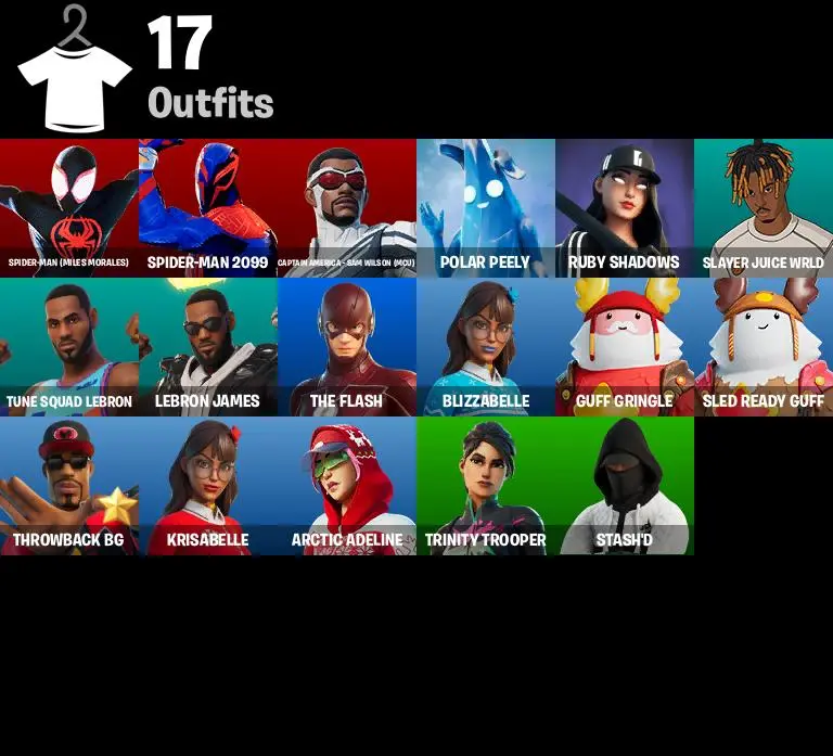 【PC/NS/XBOX/PSN】 17 skins 🔥 Captain America ⸱ Sam Wilson (MCU) 🔥 Spider-Man (Miles Morales) 🔥 Spider-Man 2099 🔥 Polar Peely 🔥 Ruby Shadows 🔥 100 VB