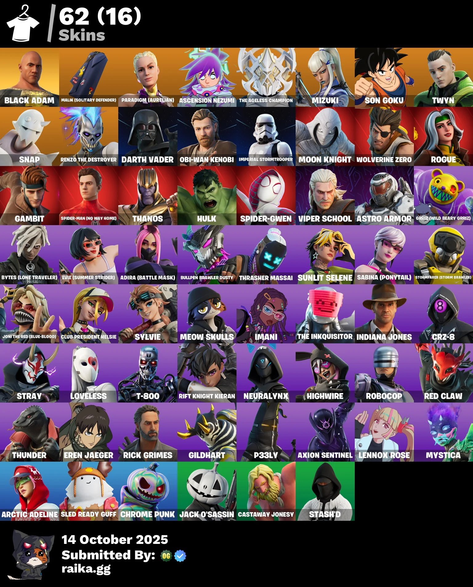[PC/PSN] 62 skins | Son Goku | Obi-Wan Kenobi | Black Adam | Moon Knight | T-800 | Eren Jaeger | Thanos lai664