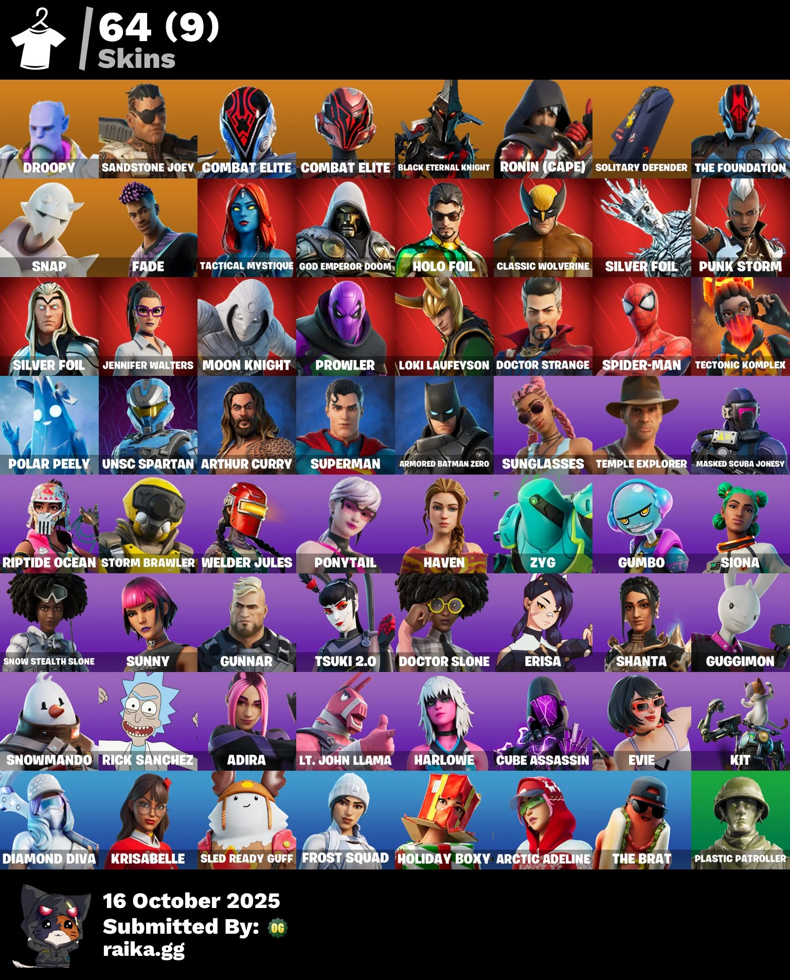 [PC/PSN] 64 skins | Moon Knight | Droopy | Sandstone Joey | Combat Elite | Combat Elite | BLACK ETERNAL KNIGHT	lai406