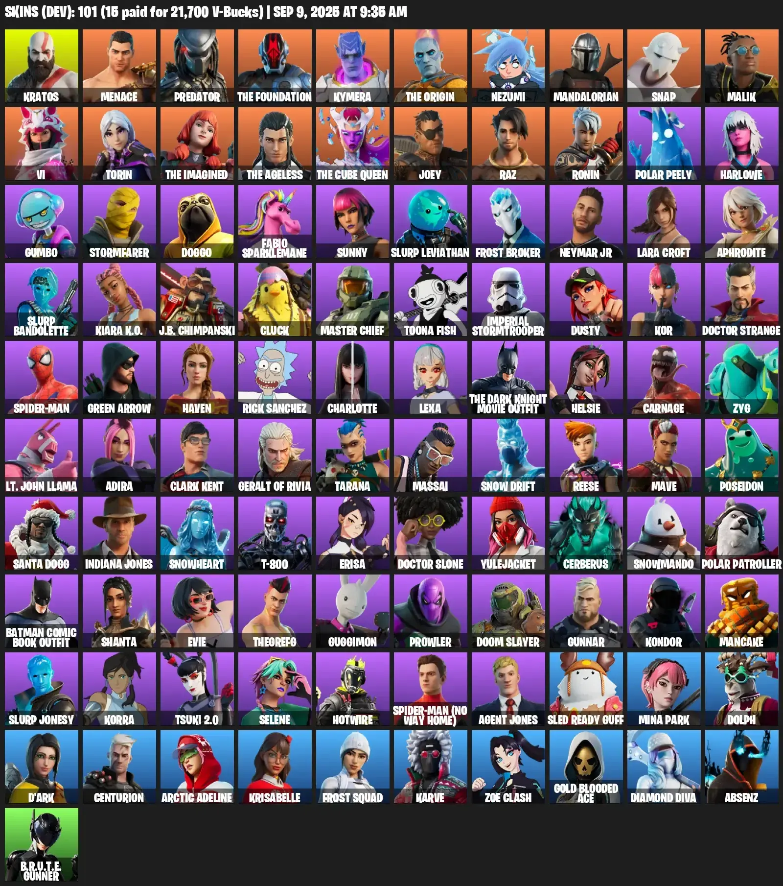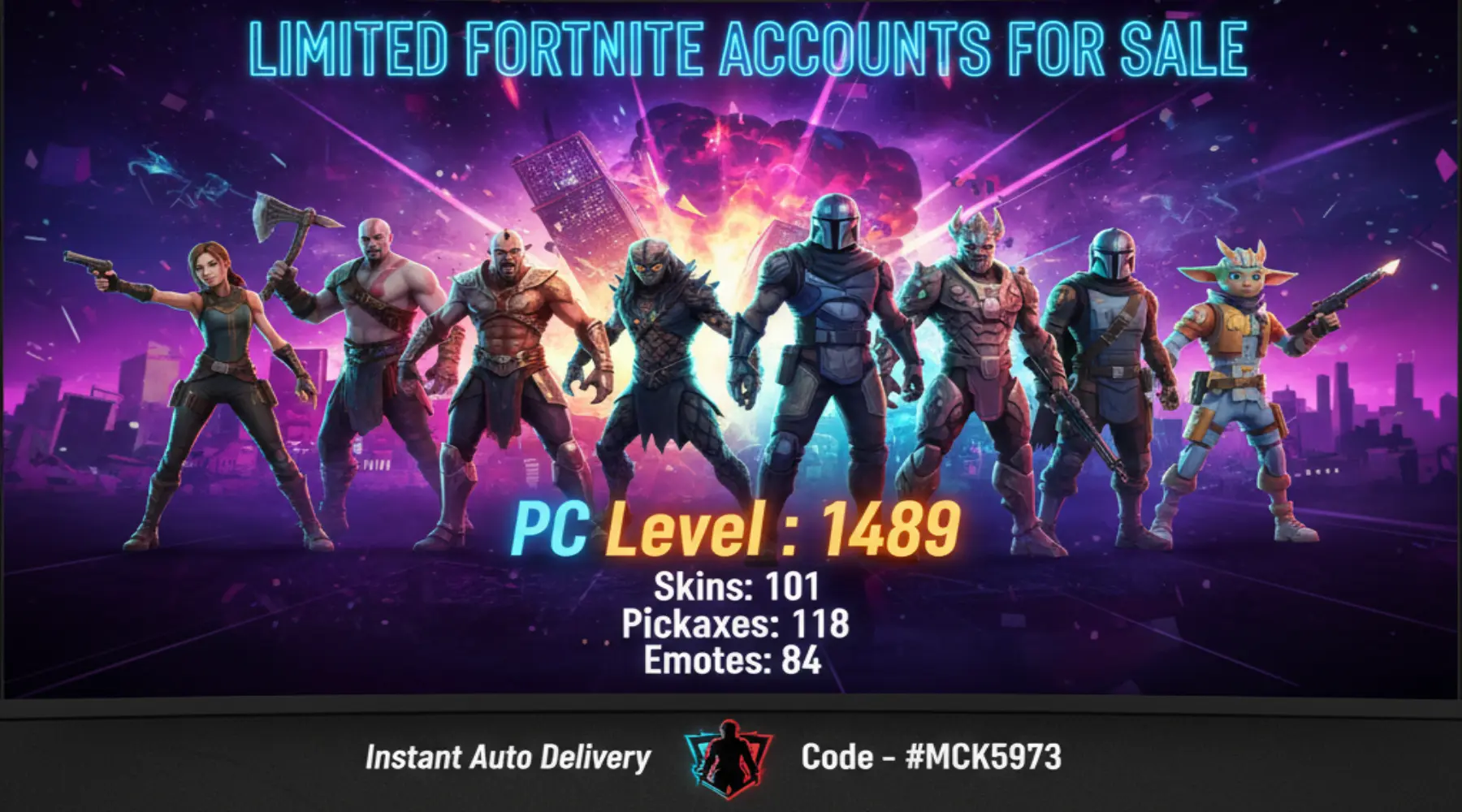 [PC/PSN] | 101 skins | Lara Croft | Kratos | Menace | Predator | The Foundation | Kymera | The Origin | Nezumi | Mandalorian | Snap | #MCK5973 | #MBFN