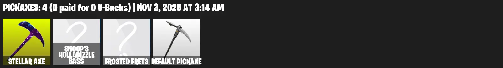 [PC/PSN/XBOX] | 1 skins | Galaxy | Stellar Axe | Snoop's Holladizzle Bass | Frosted Frets | Default Pickaxe | S4G