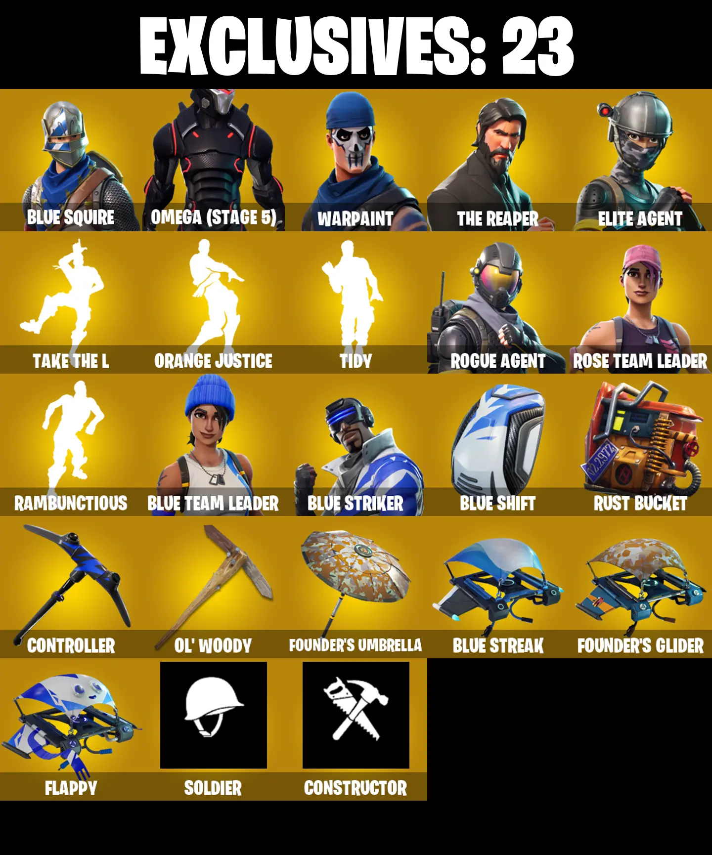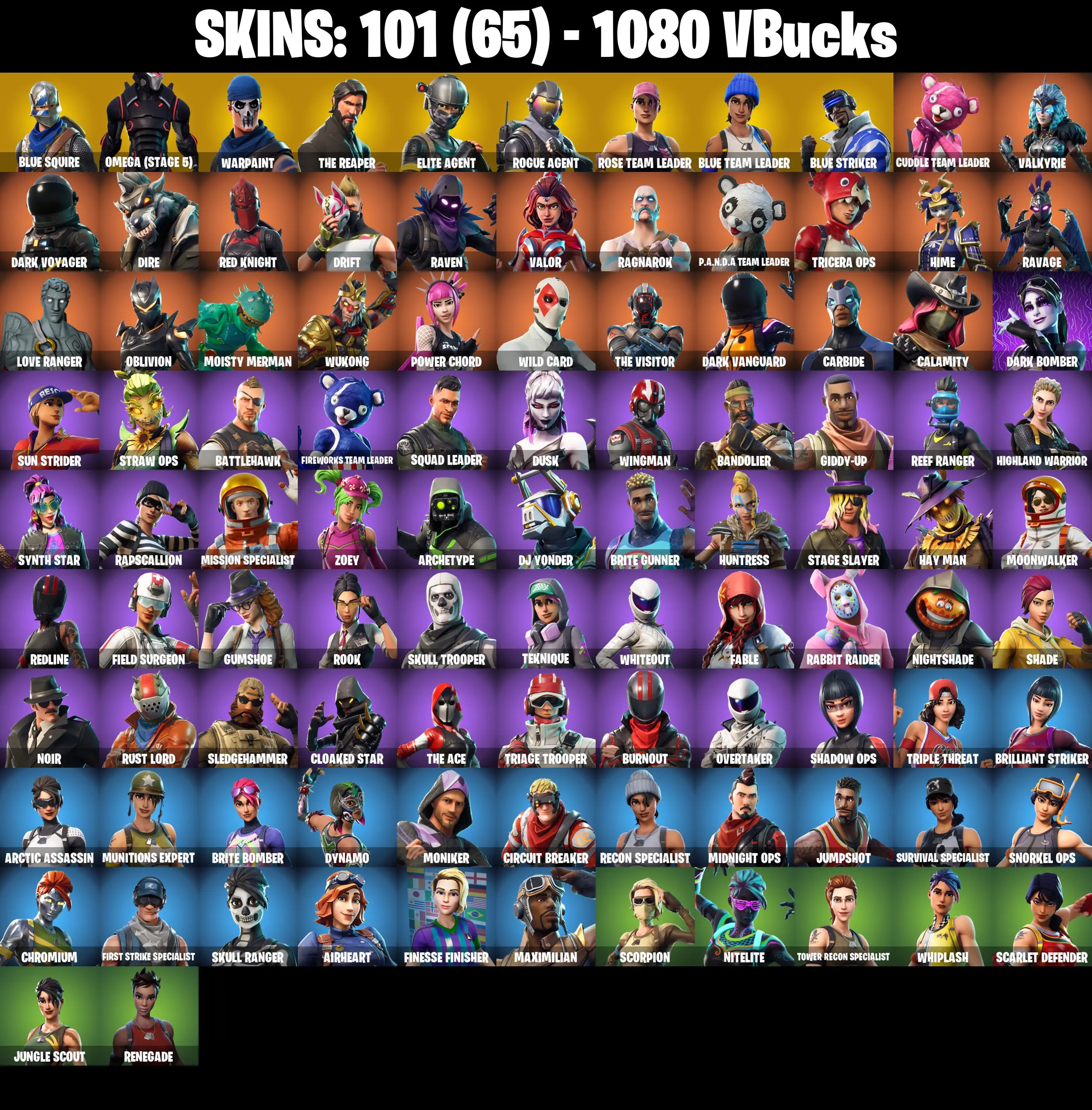 PC/PSN/XBOX ♨️101 skins ✨ OG STW ✨ Blue Squire ✨ Omega (stage 5) ✨ The Reaper ✨ Elite Agent ✨ Take The L ✨ Orange Justice ✨ Tidy ✨ Dark Voyager ✨ #B859