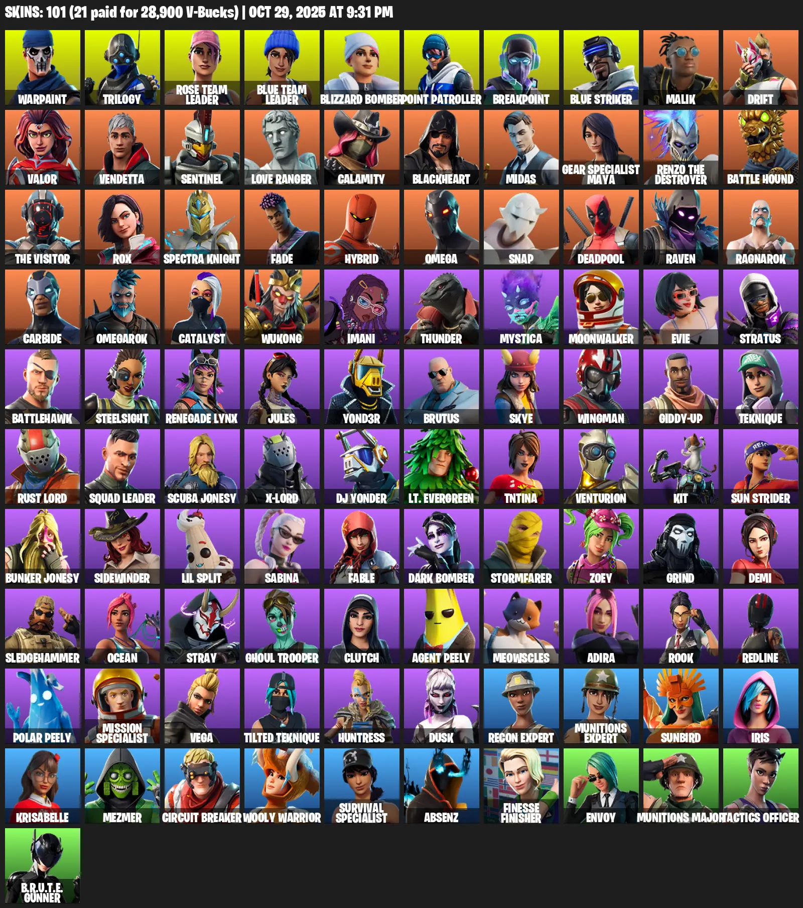 [PC/PSN/XBOX] | 101 skins | Take The L | OG STW | Omega | Warpaint | Trilogy | Rose Team Leader | Blue Team Leader | #DMR6258 | #MBFN