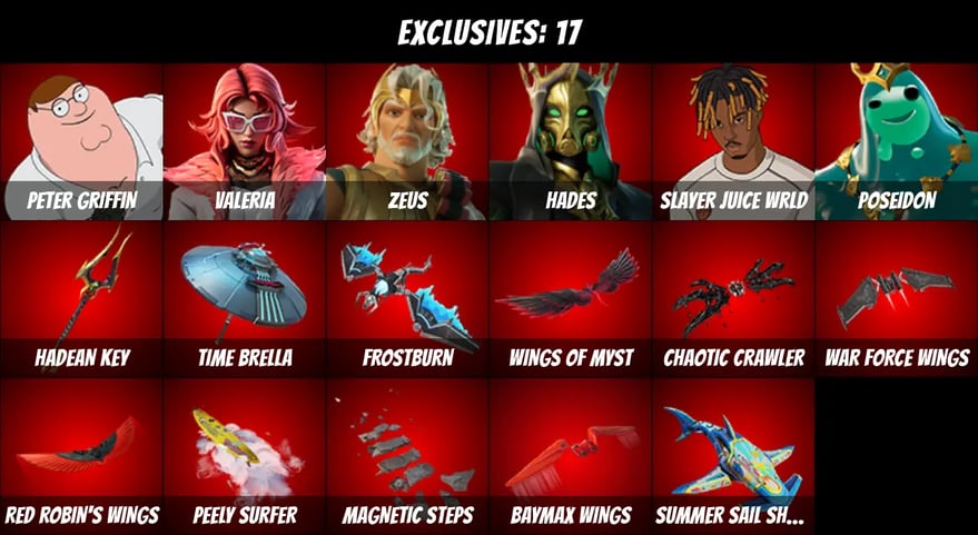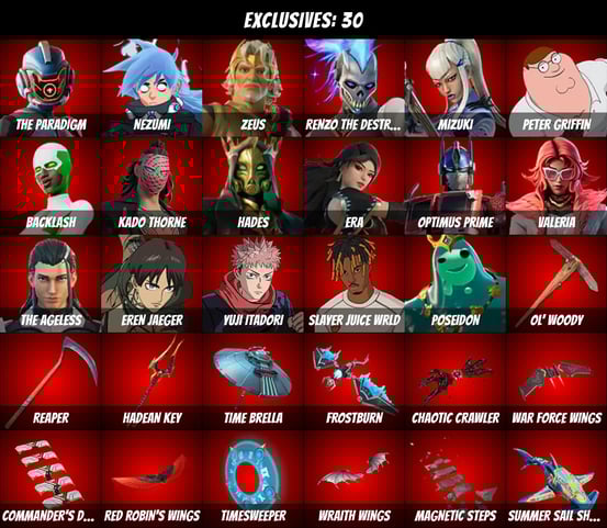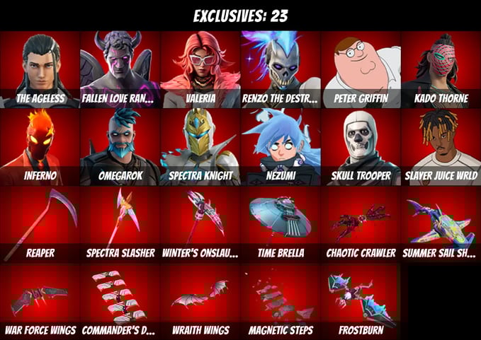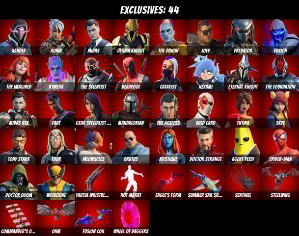 ⚡PC/PSN/XBOX⚡ 114 skins 💎 Skull Trooper 💎 Rick Sanchez 💎 Surf Witch 💎 Spider-Gwen 💎 Darth Vader 💎 Blaze 💎 Spider-Man 💎 Focus 💎 The Ageless 💎 Itachi Uchiha 💎 Renzo the Destroyer 💎 Snap 💎 Peter Griffin 💎 Doctor Strange 💎 Xander 💎 Nezumi 💎 400 V-Bucks 💎