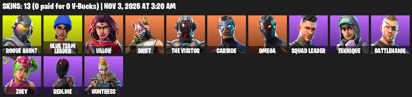 [PC/PSN/XBOX] | 13 skins | Omega | Rogue Agent | Blue Team Leader | Valor | Drift | The Visitor | Carbide | Squad Leader | Teknique | Battlehawk | S4G