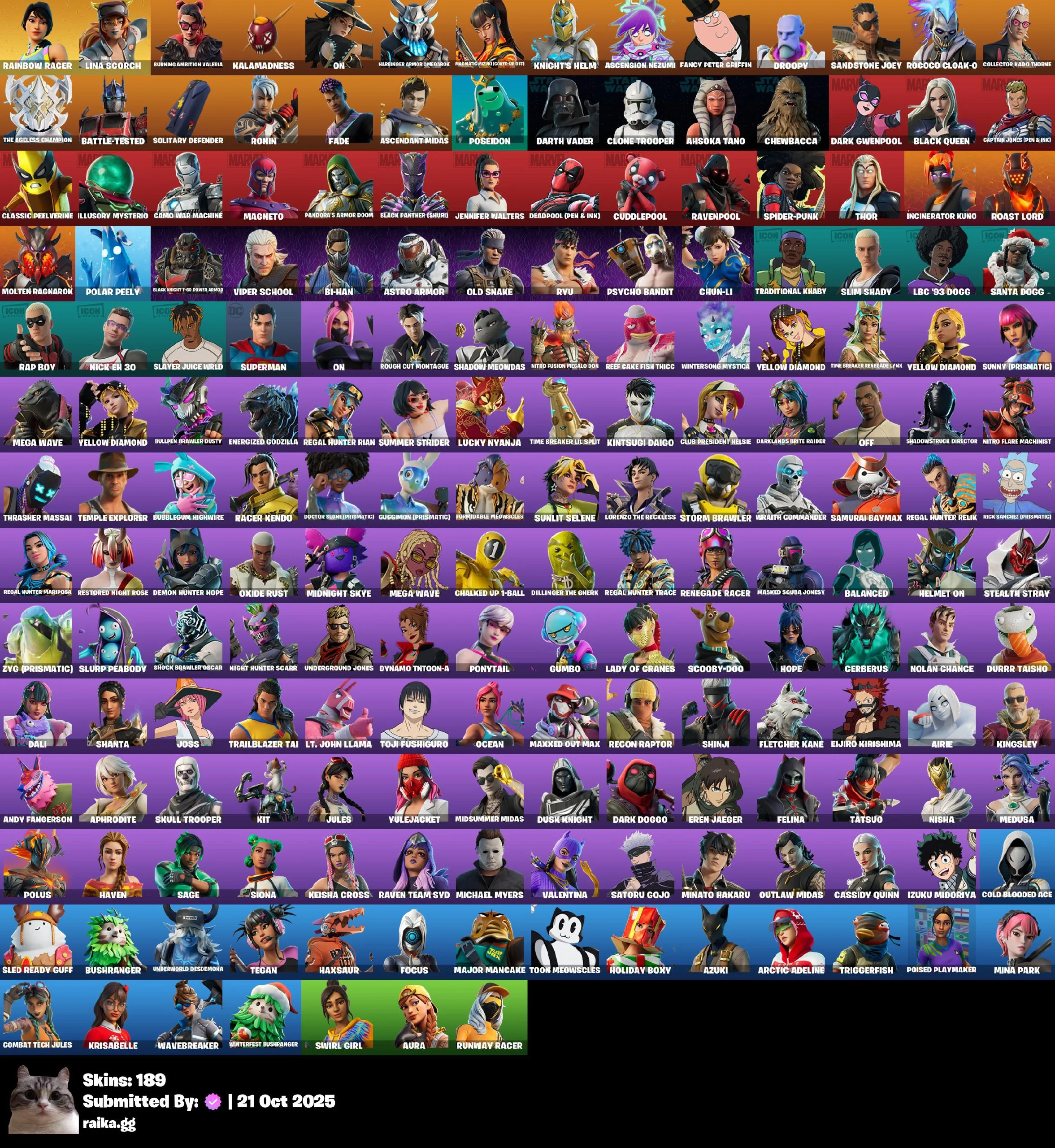 [PC/PSN/XBOX] 189 skins | Rainbow Racer | Lina Scorch | Burning Ambition Valeria | Kalamadness | On | Harbinger Armor Omegarok | 1750 VB