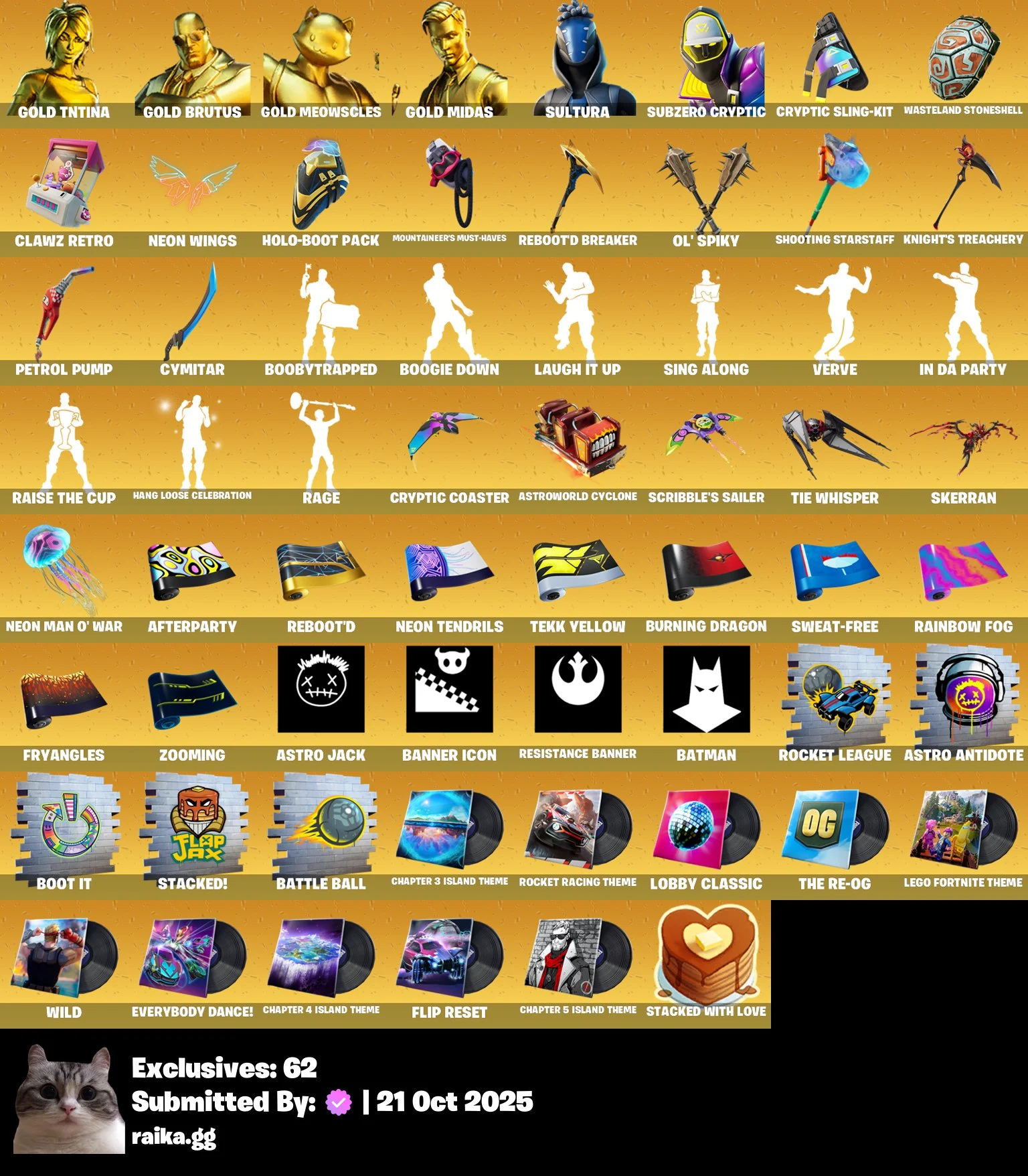 [PC/PSN/XBOX] 194 skins | Gold TNTina | Gold Brutus | Gold Meowscles | Gold Midas | Sultura | Subzero Cryptic | Burning Ambition Valeria | DARK | 750