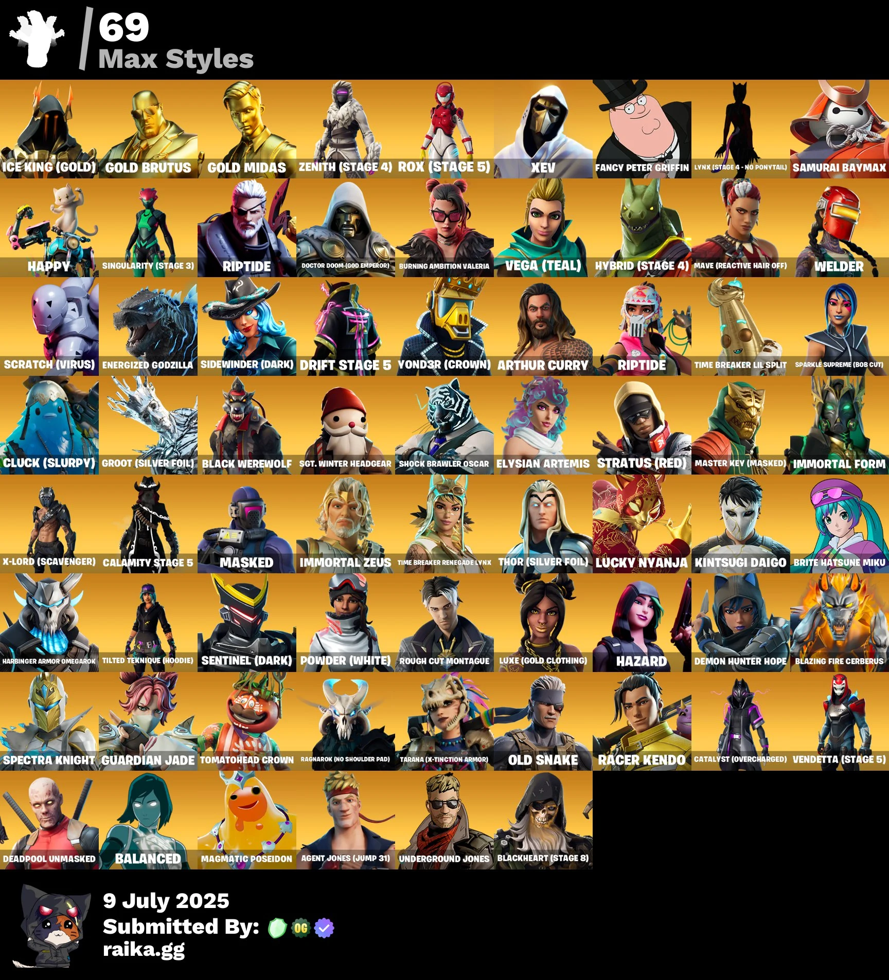 ❄️ [PC/PSN/XBOX] 194 SKINS | Eon, Gold Midas, Omega, Rebirth Raven, Spider-Man, Nisha, Lexa, Alpine Ace, Cyclo, Dire, Wild Card, Menace, Joey, Rage, Bird Call, Catalyst, Thor, Demon Hunter Hope, Powder, Drift, Doctor Doom
