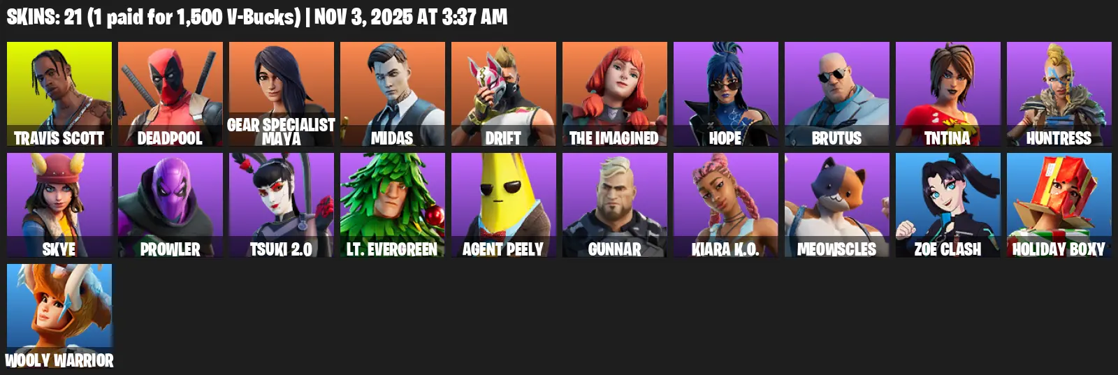 [PC/PSN/XBOX] | 21 skins | 1000 V-bucks | Travis Scott | Deadpool | Gear Specialist Maya | Midas | Drift | The Imagined | Hope | Brutus | TNTina | S4G