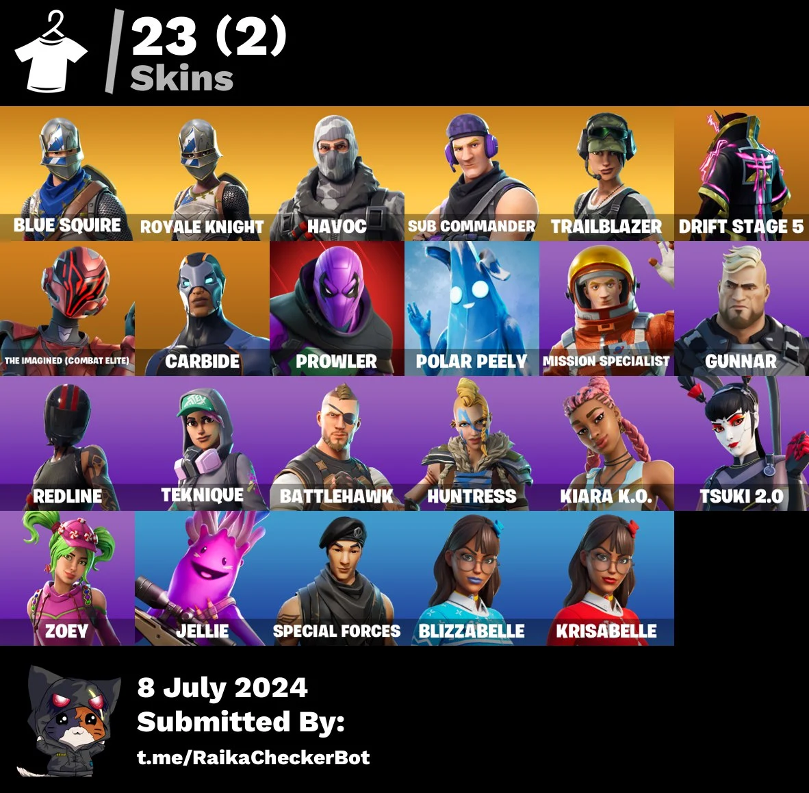 [PC/PSN/XBOX] 23 skins | Blue Squire | Royale Knight | Havoc | Sub Commander | Trailblazer | Drift Stage 5 | The Imagined (Combat Elite) | 0 VB