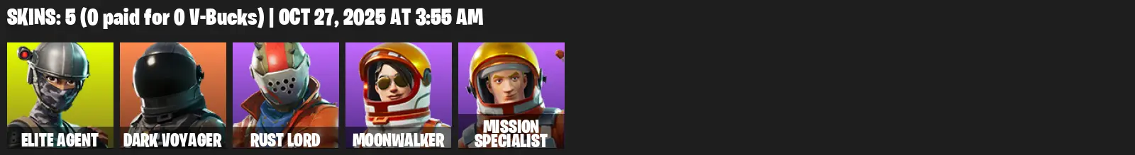 [PC/PSN/XBOX] | 5 skins | Take The L | Elite Agent | Dark Voyager | Rust Lord | Moonwalker | Mission Specialist | Trusty No. 2 | EVA | Sawtooth | S4G