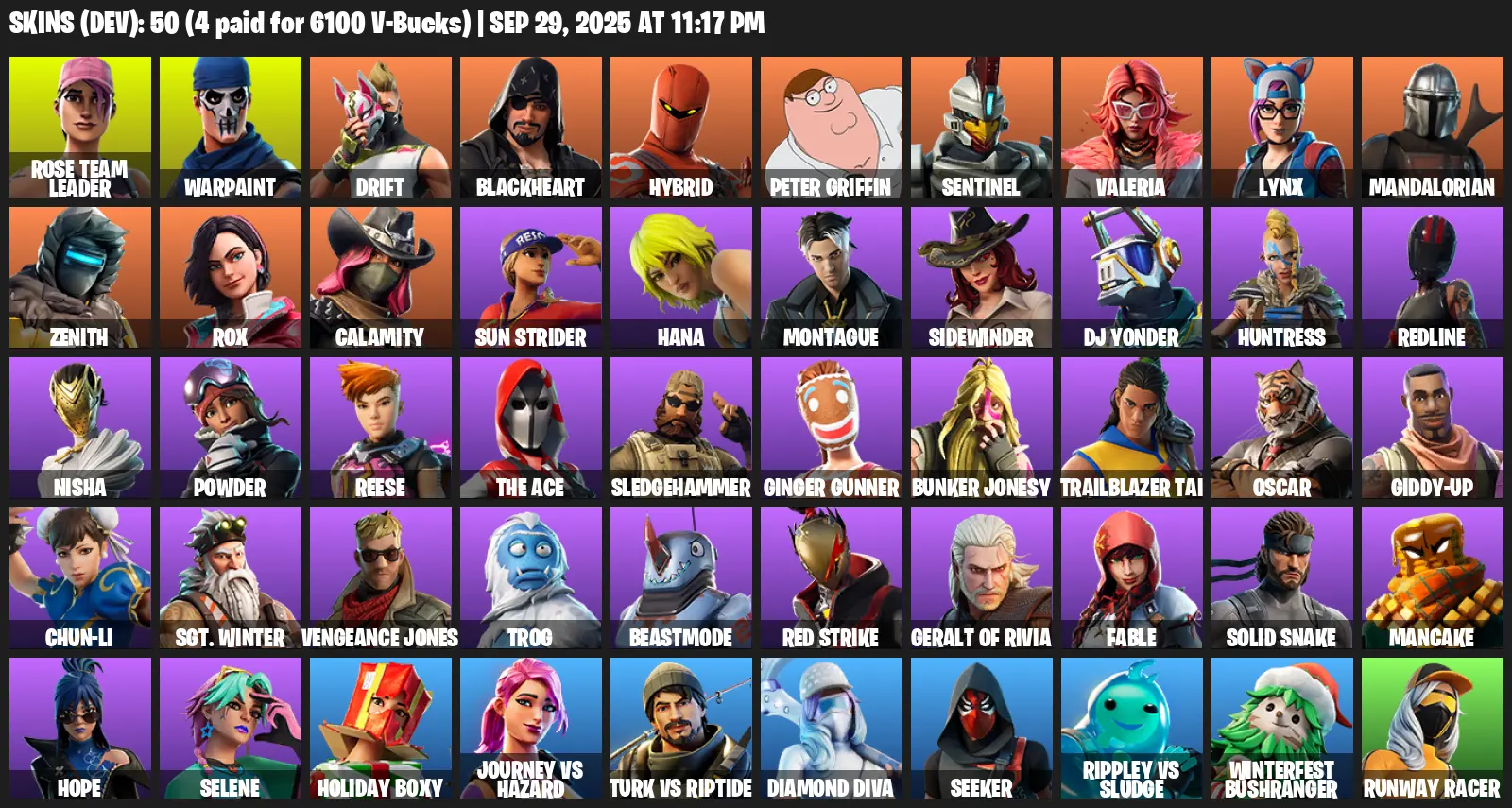 [PC/PSN/XBOX] | 50 skins | OG STW | Rose Team Leader | Warpaint | Drift | Blackheart | Hybrid | Peter Griffin | Sentinel | Valeria | Lynx | S4G