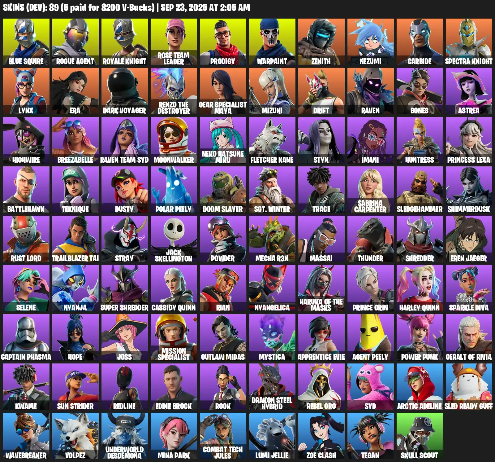 [PC/PSN/XBOX] | 89 skins | Take The L | OG STW | Royale Knight | Blue Squire | Rogue Agent | Rose Team Leader | Prodigy | Warpaint | #DRD2619 | #MBFN