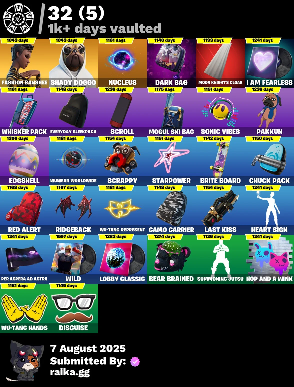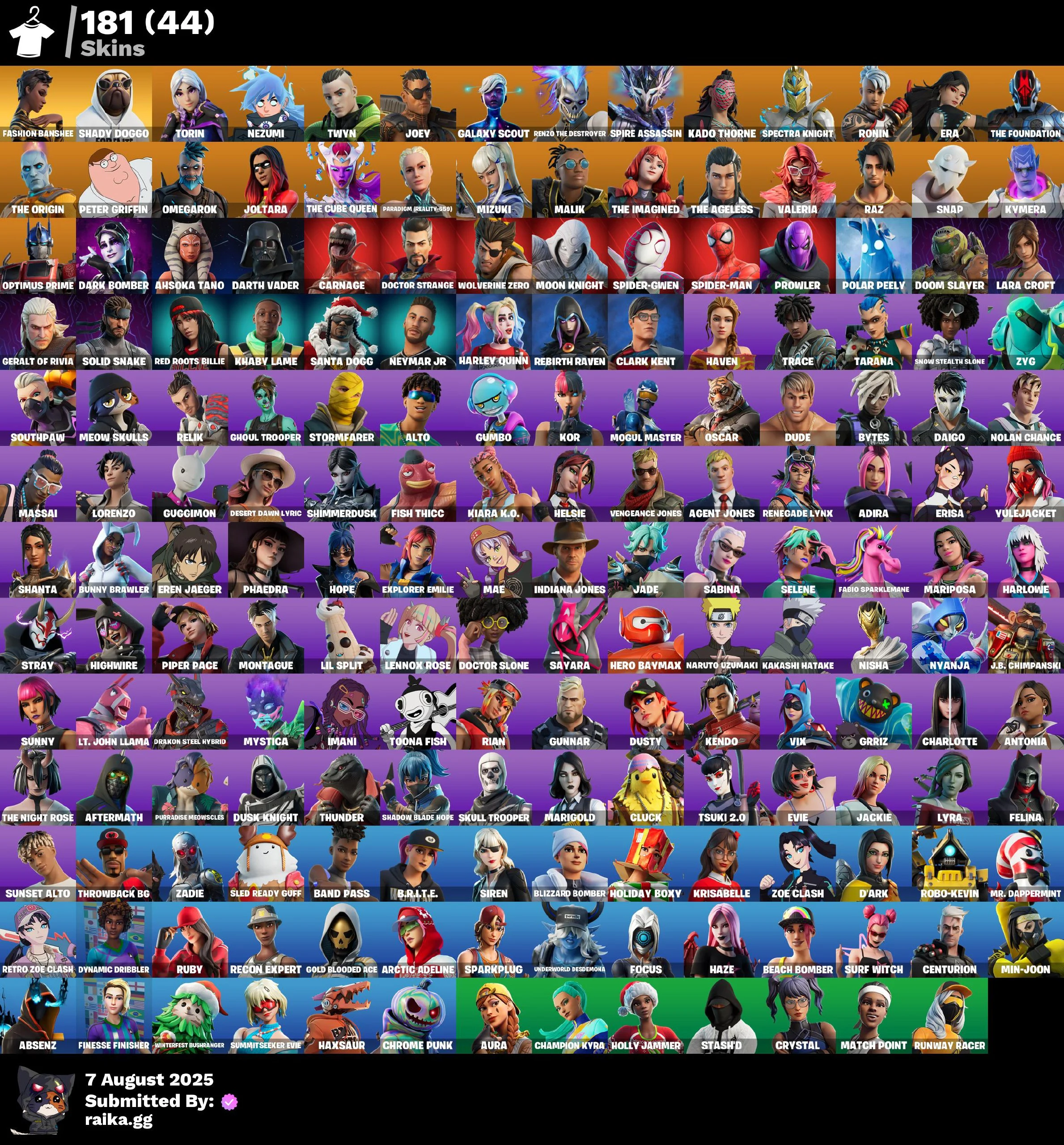 [PC/PS/XBOX] 181 Skins ✔ Fashion Banshee ✔ Shady Doggo ✔ Mountaineer's Must-Haves ✔ Basic Basher ✔ Ol' Woody ✔ Bhangra Boogie ✔ Torin ✔ 250 VB
