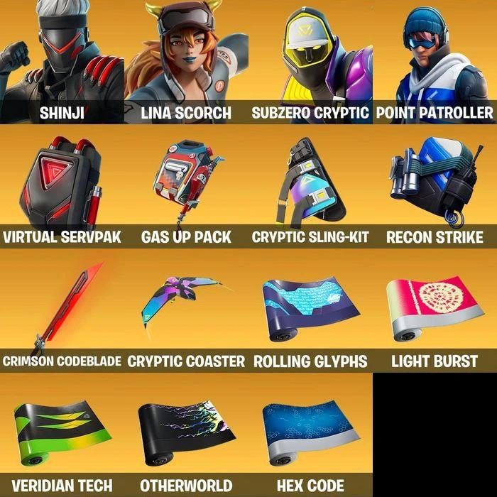 [PC/XBL] | 28 Skins | Shinji | Lina Scorch | Subzero Cryptic | Point Patroller | Outlaw Midas | Crimson Codeblade | Default Pickaxe | Outlaw's Whipknives | 5450 VB