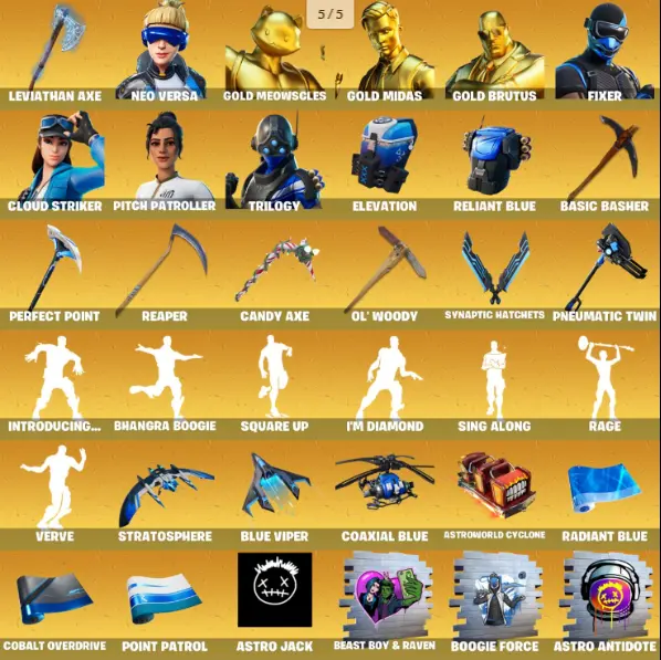 [PC\XBOX] 139 skins | Leviathan Axe | Neo Versa | Gold Meowscles | Gold Midas | Gold Brutus | Fixer | Cloud Striker | Pitch Patroller | Trilogy | Era | 1300 VB