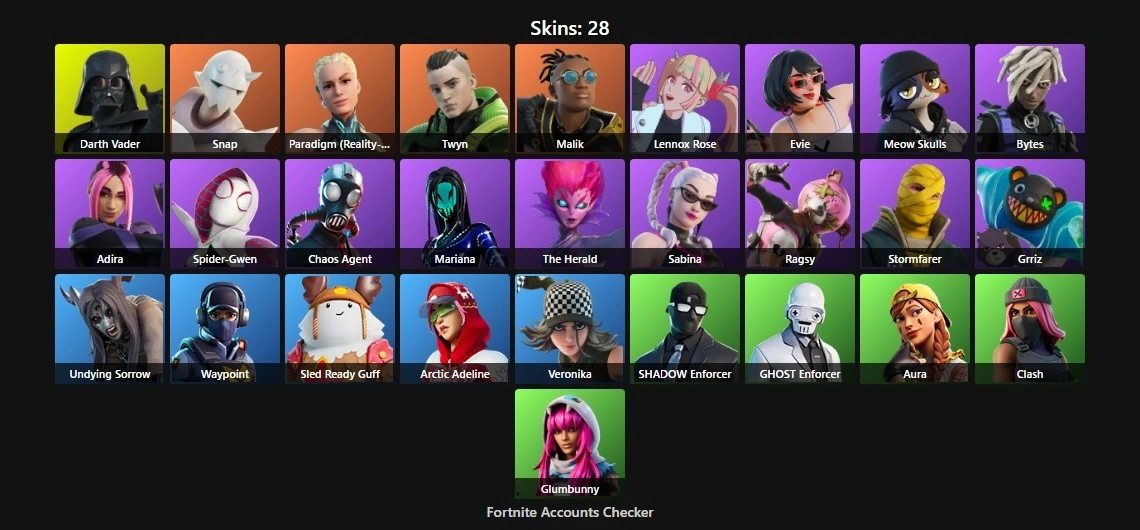 PC/XBOX 28 Skins⚡ | Darth Vader | Snap | Paradigm (Reality-659) | Twyn | Malik | Lennox Rose | Evie | Meow Skulls | Bytes | Adira | Spider-Gwen | Chaos Agent