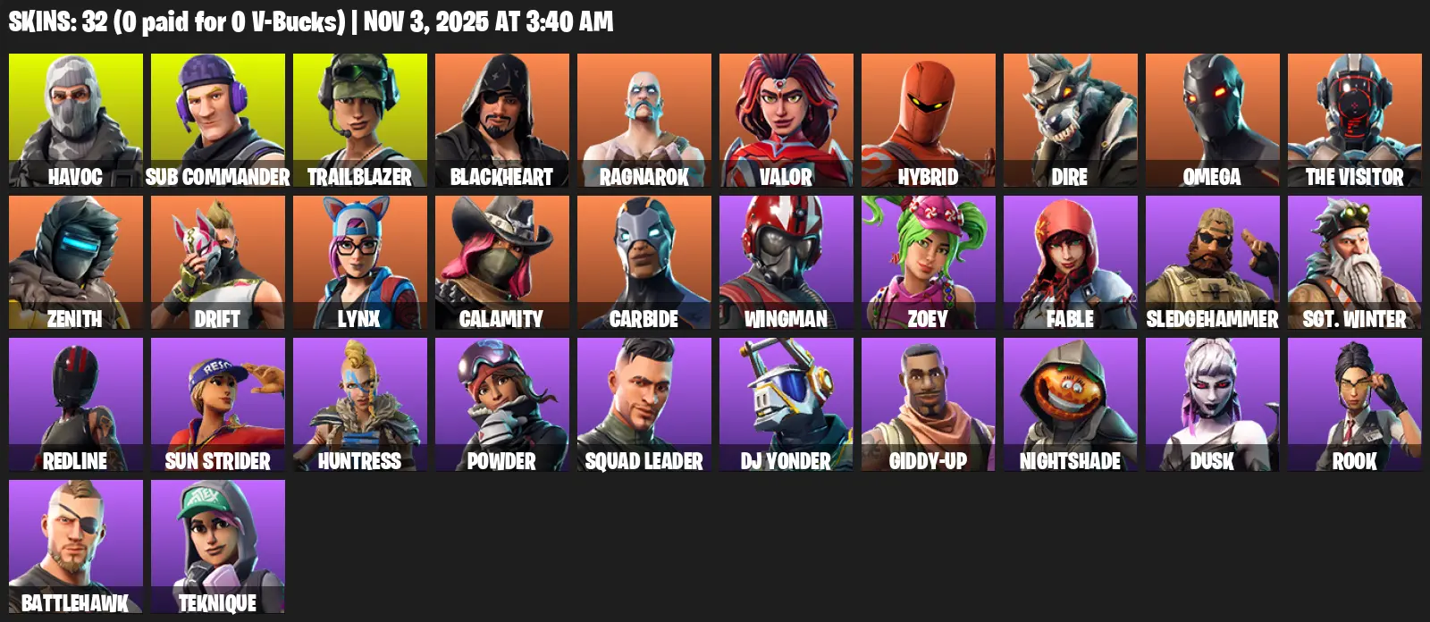 [PC/XBOX] | 32 skins | Omega | Havoc | Sub Commander | Trailblazer | Blackheart | Ragnarok | Valor | Hybrid | Dire | The Visitor | Zenith | S4G